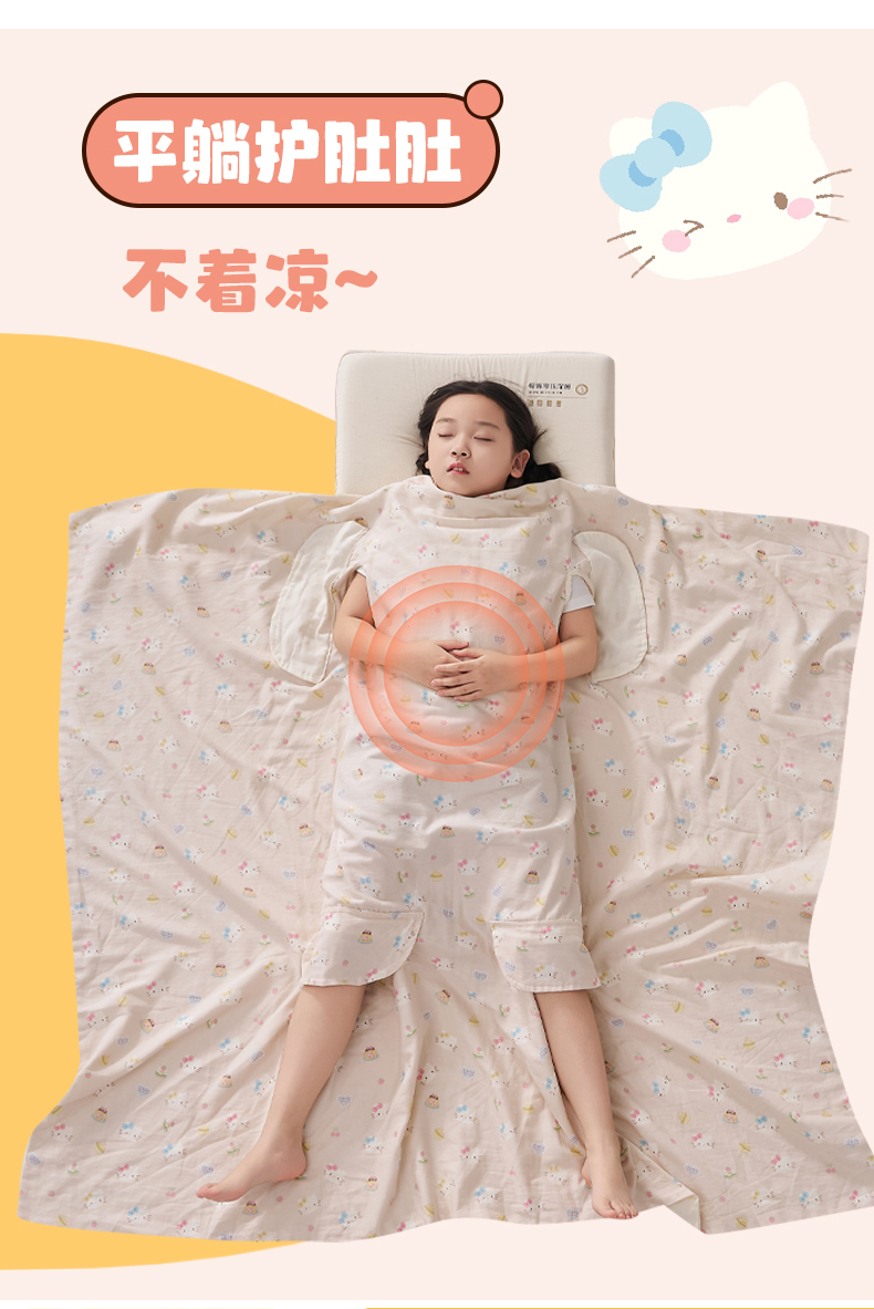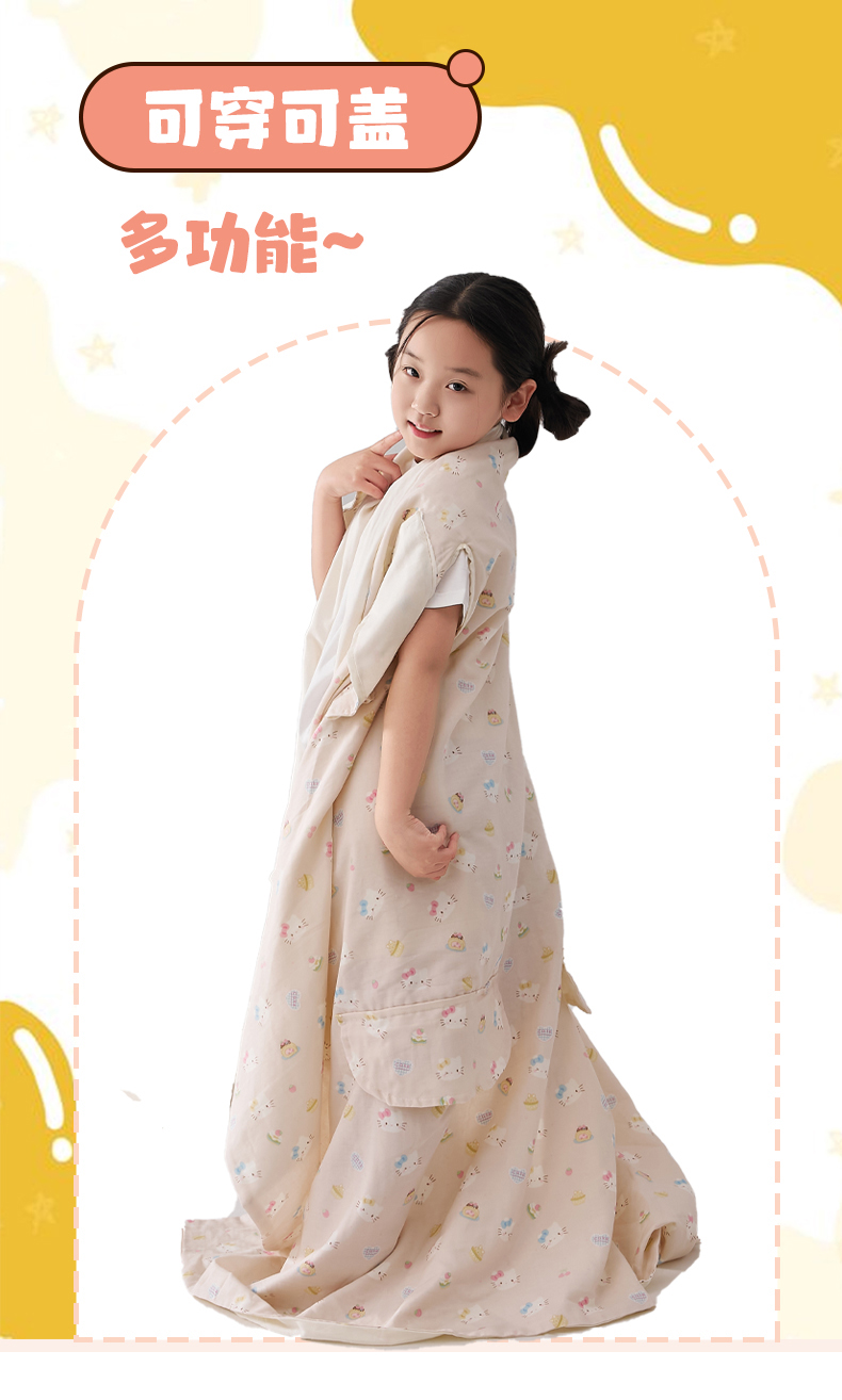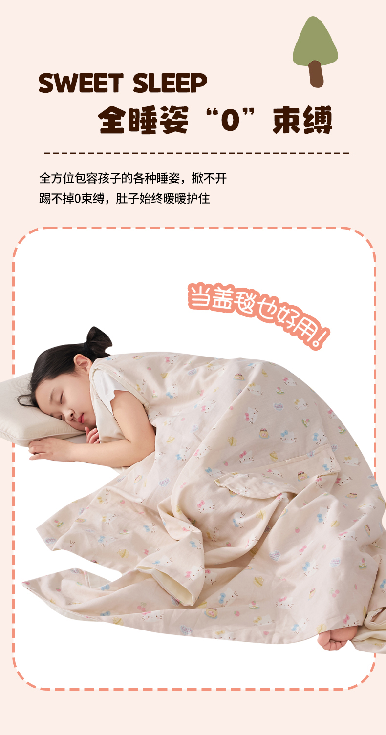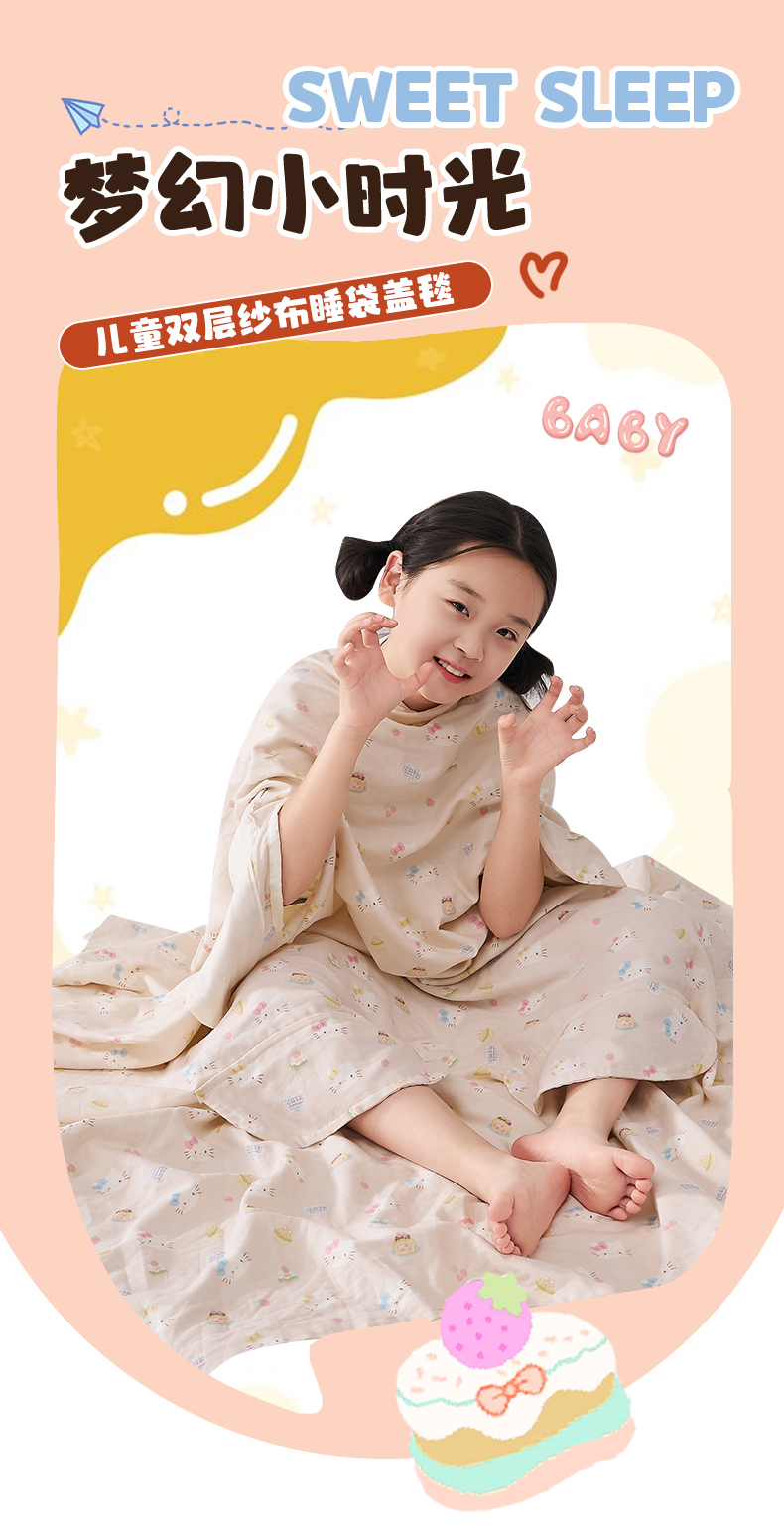 商品名称:暖阳 2026新款儿童双层纱布睡袋盖毯 睡袋-粉色喵喵