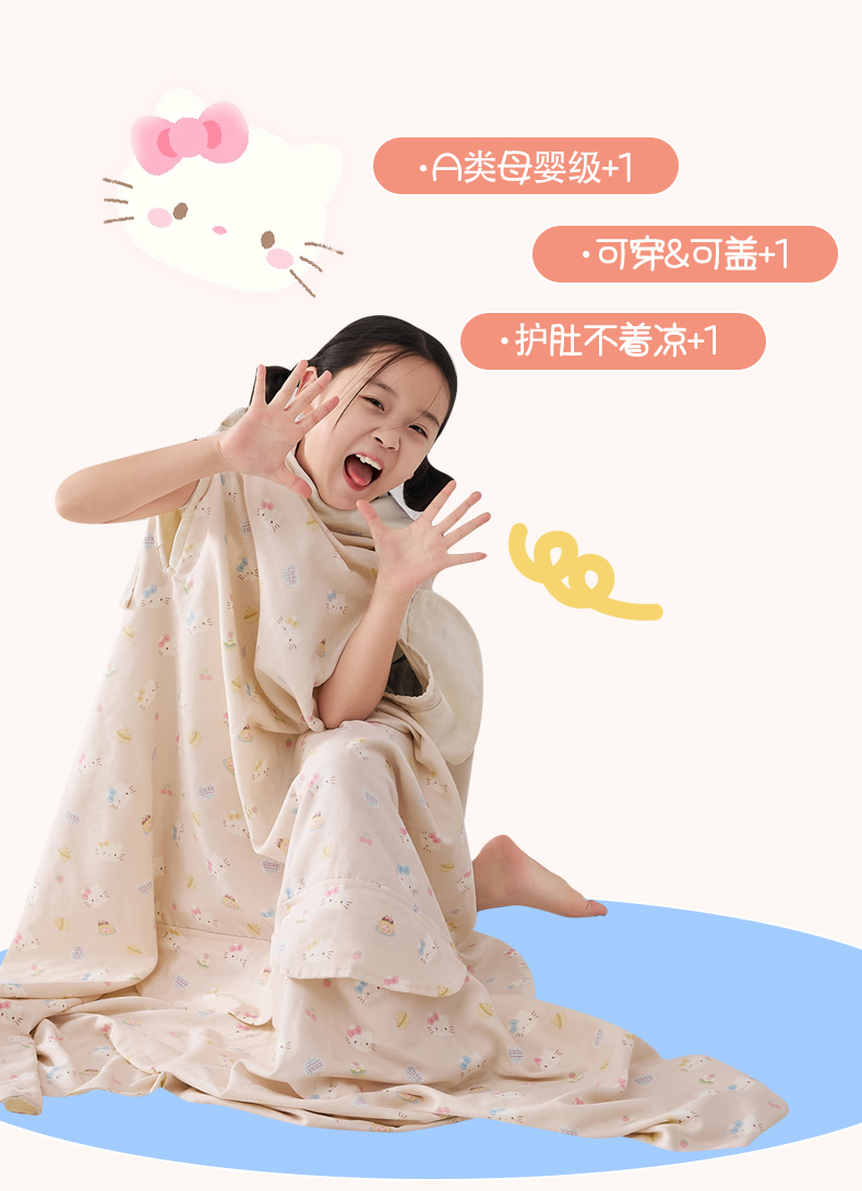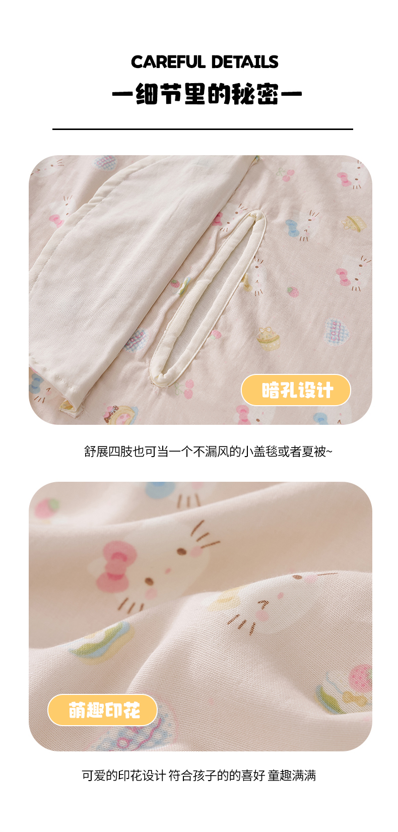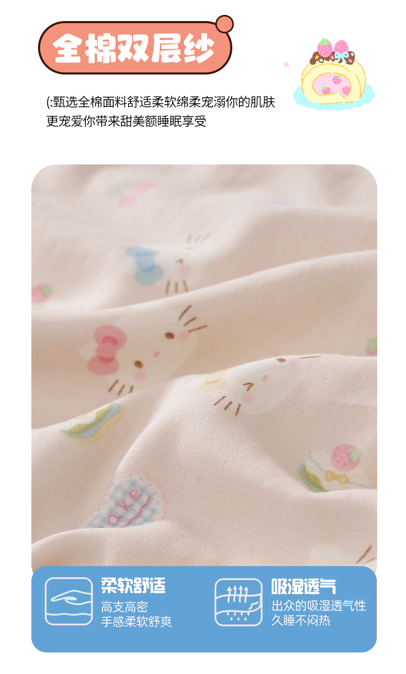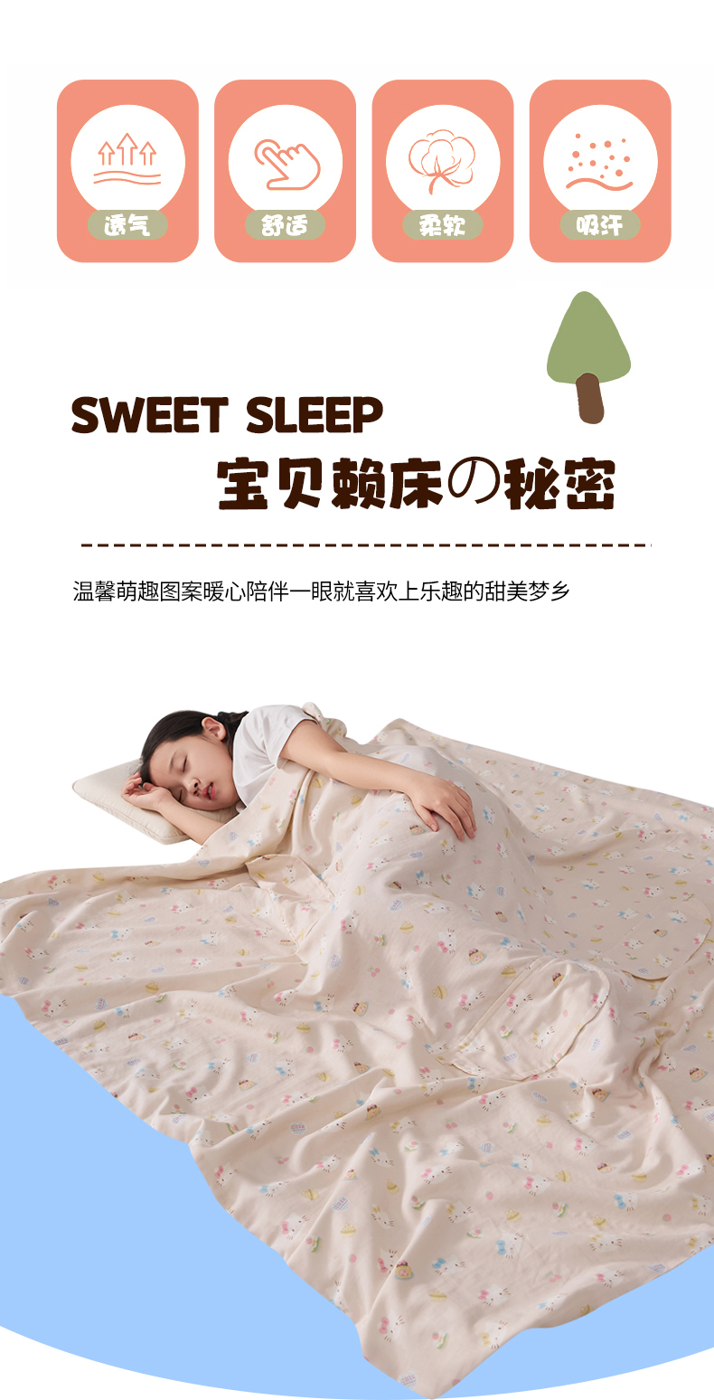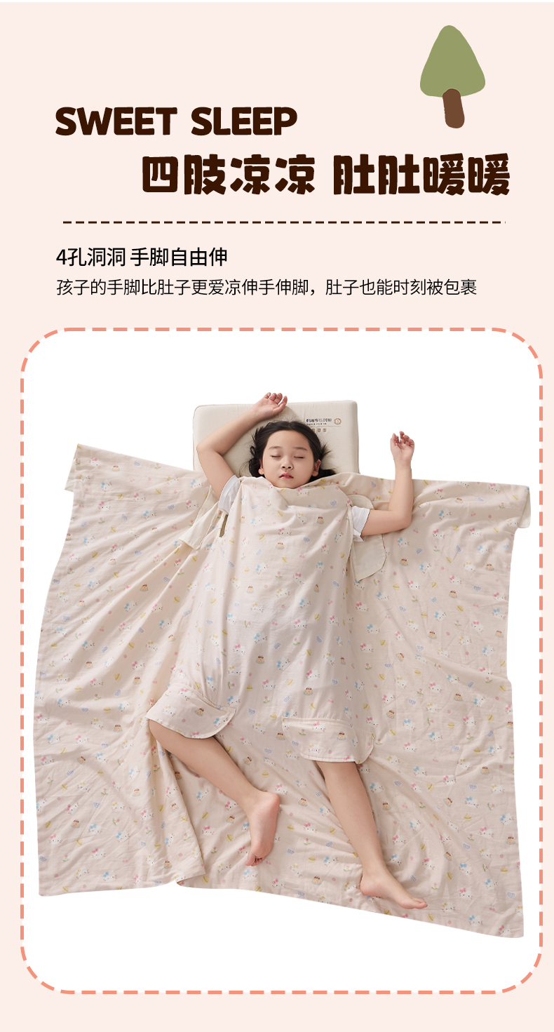 商品名称:暖阳 2026新款儿童双层纱布睡袋盖毯 睡袋-粉色喵喵
