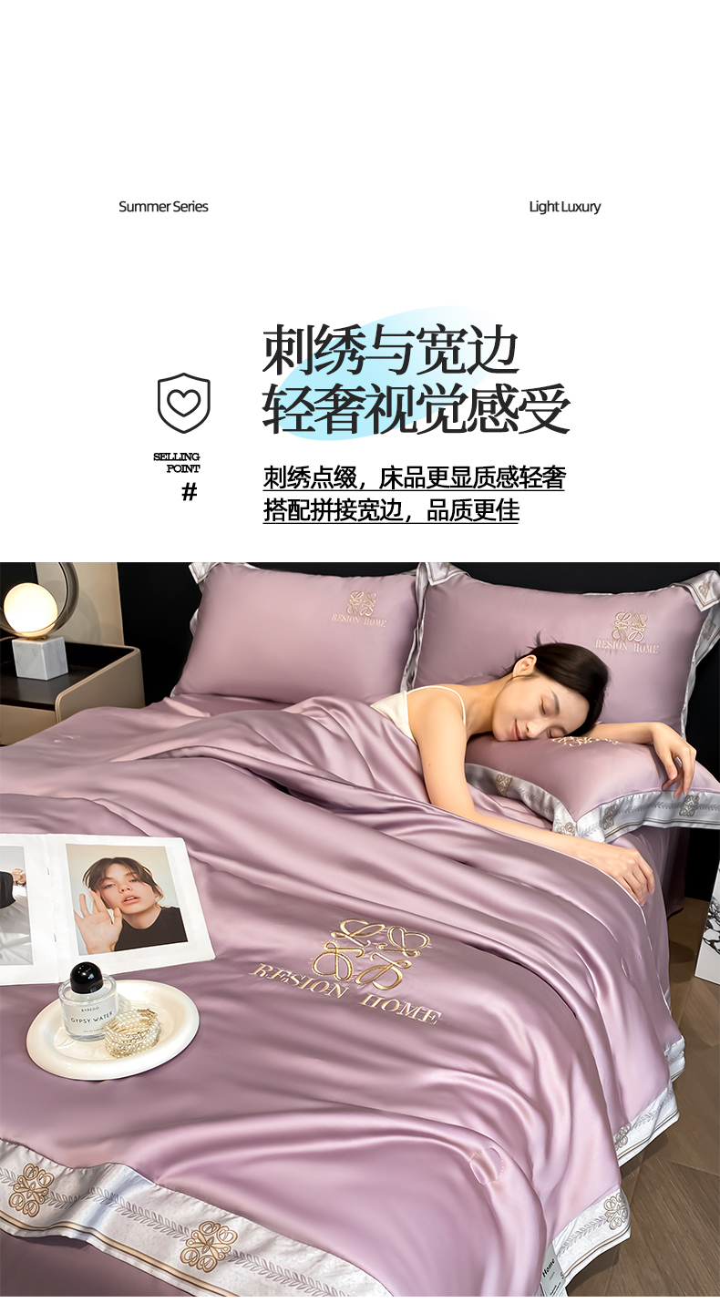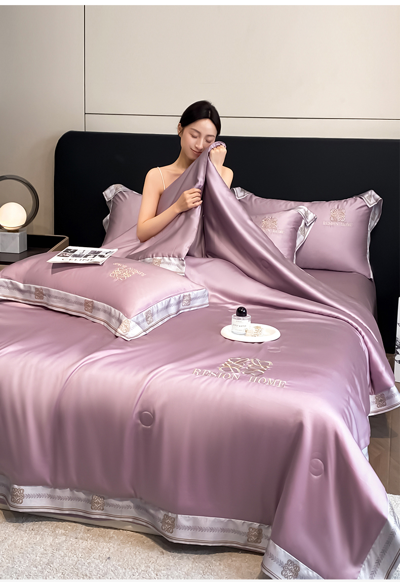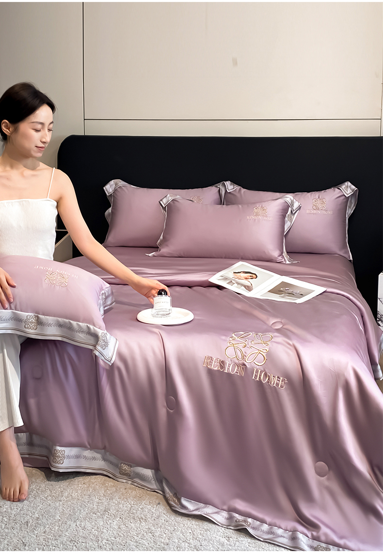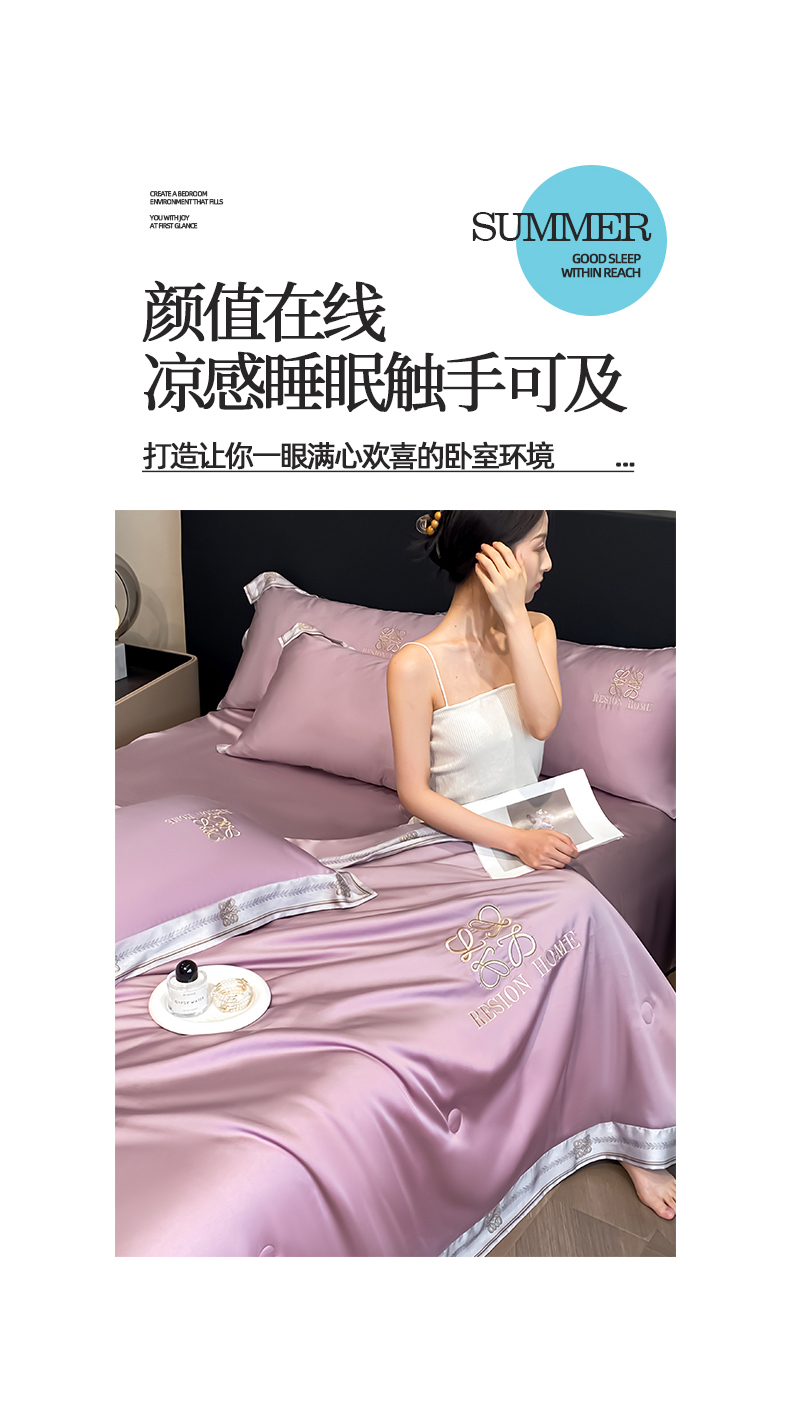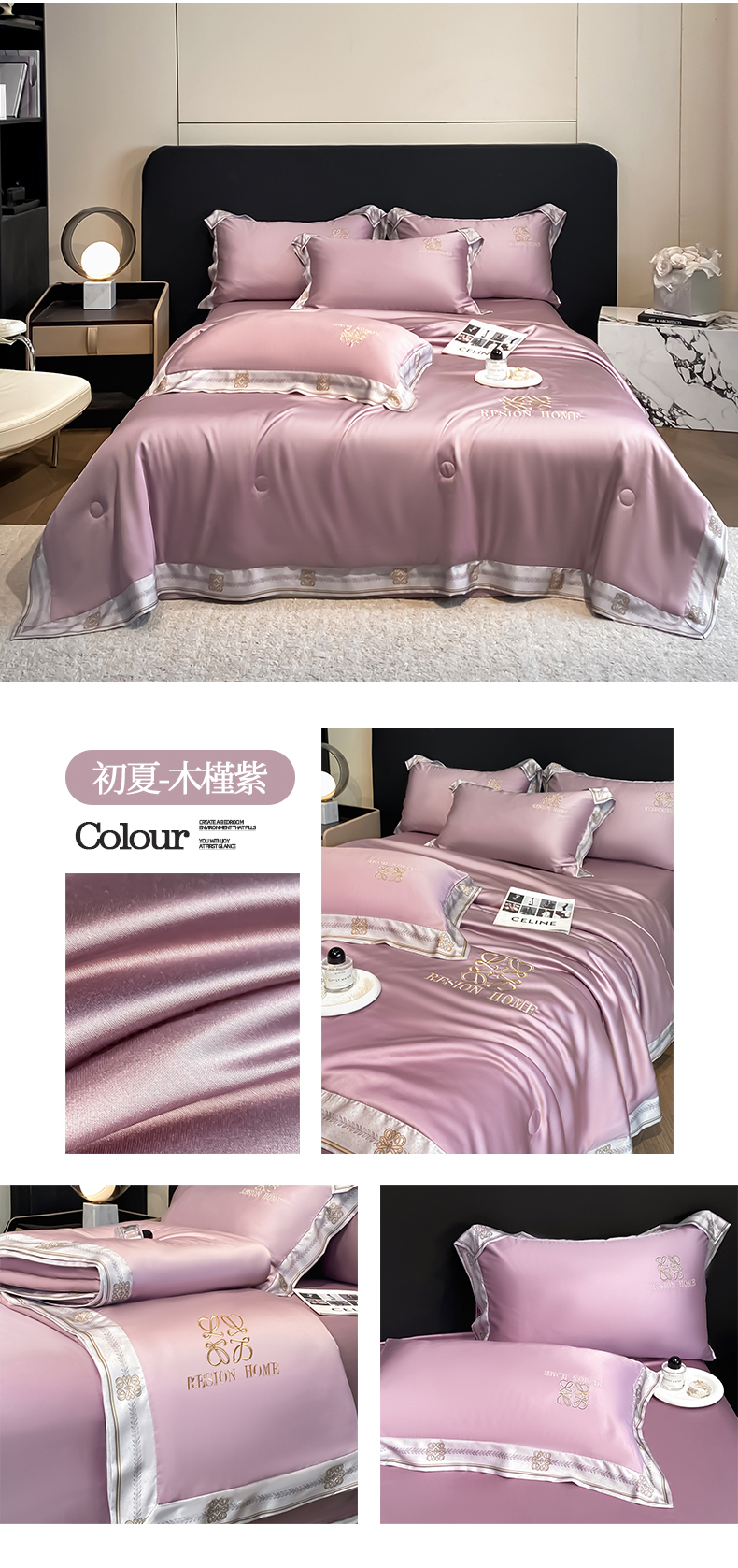• 91家纺网 家纺一手货源 找家纺 露梦家纺 2026新款初夏水洗真丝夏被四件套 初夏-木槿紫