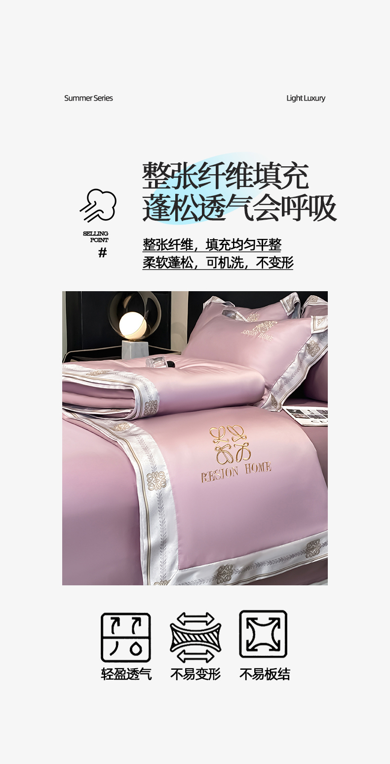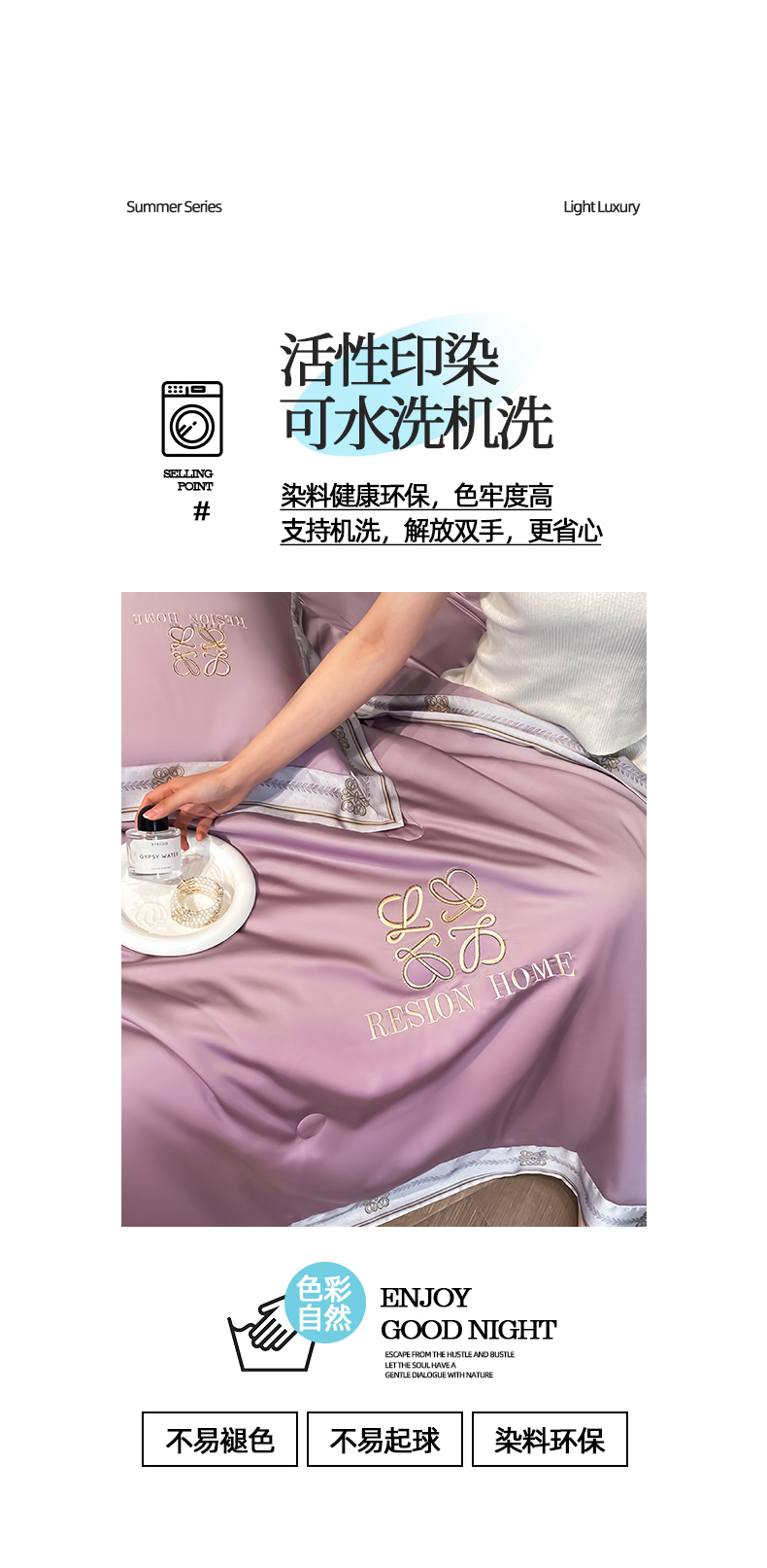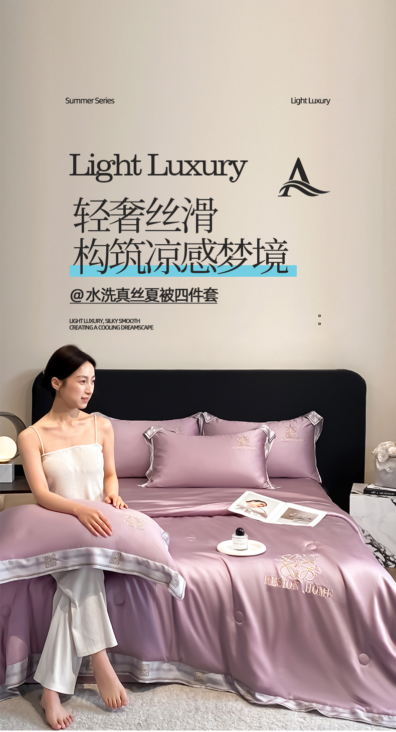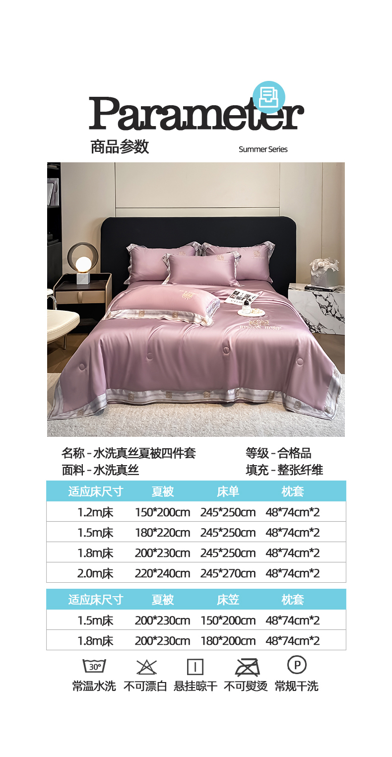 • 91家纺网 家纺一手货源 找家纺 露梦家纺 2026新款初夏水洗真丝夏被四件套 初夏-木槿紫