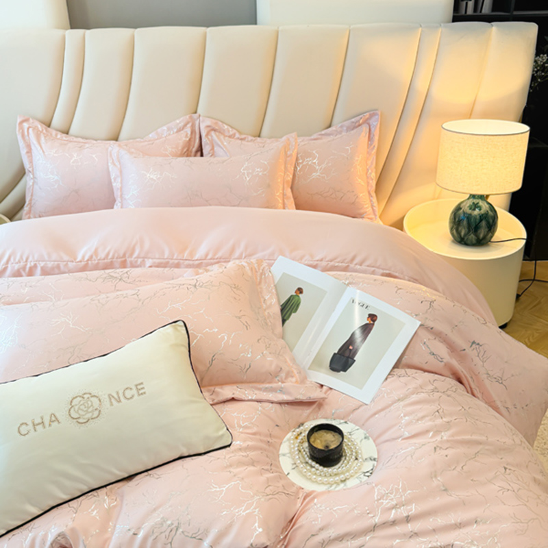 商品名称:(总)棠颂家纺 2026新款直播热款沐光天丝烫金四件套吊边床单一字绣(礼盒款)