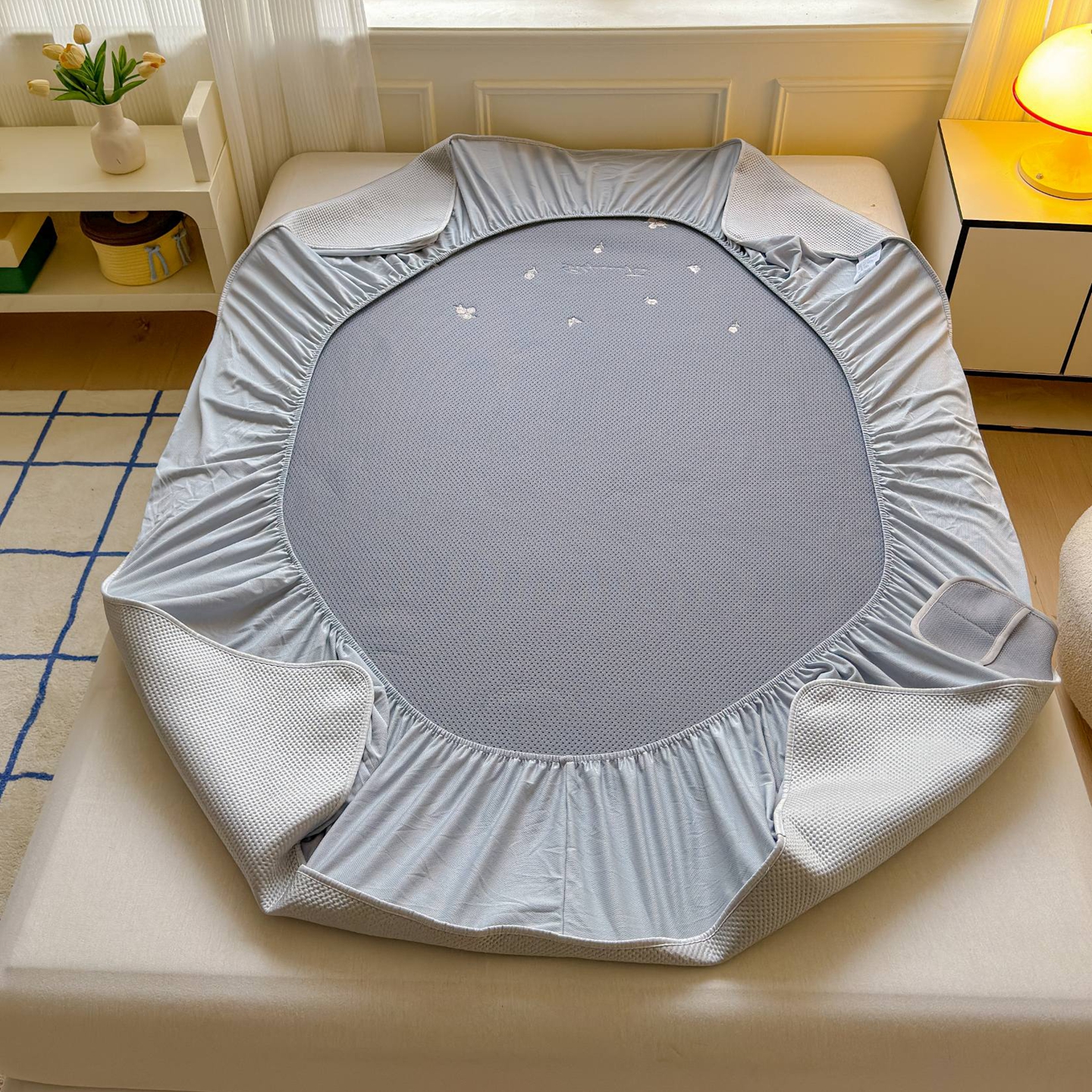 (总)席匠 2026新款凉豆豆床裙床笠凉席三件套-小蝴蝶系列,小蝴蝶粉,小蝴蝶灰