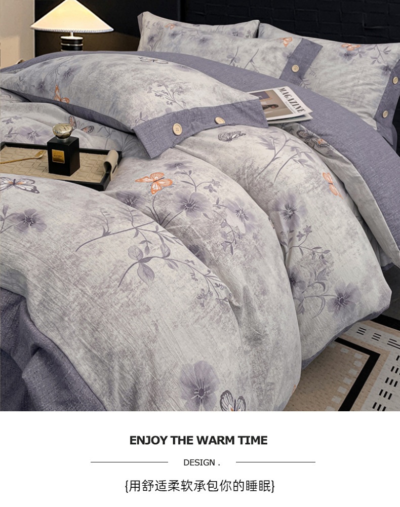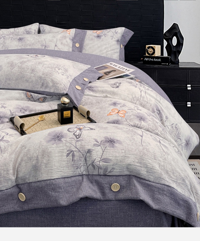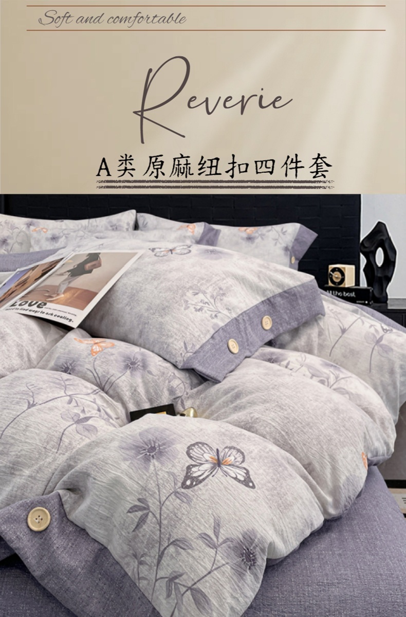 当前位置: 91家纺网 > 商品网购 > 床品套件 > 四件套 > 其它四件套 > 圣比熊 2026春夏新款A类原麻纽扣四件套加厚被套床单宿舍双人床仿亚麻套件-最新款 花与蝶