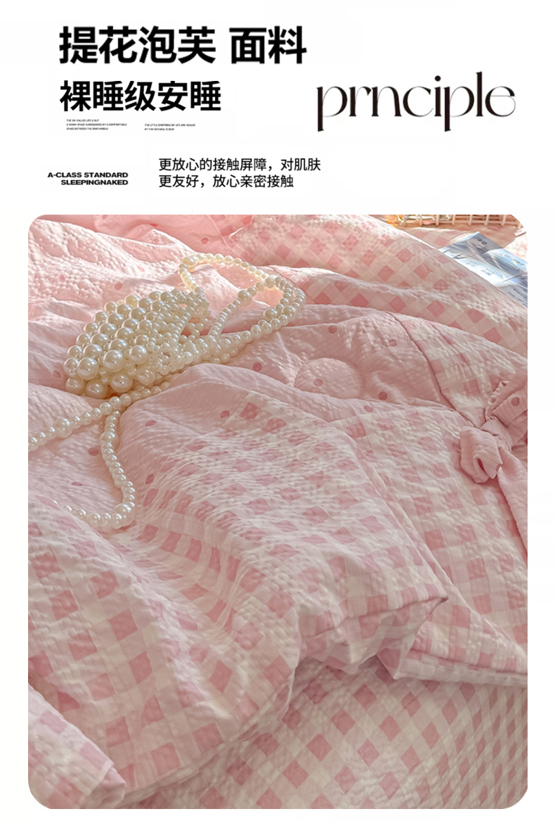 (总)爱彼家纺 2026春夏新款提花泡芙棉拼角蝴蝶结软乎乎的撸猫感单夏被夏被四件套-甜莓气泡,泡芙夏被-海盐蓝波点,泡芙夏被-奶粉波点,泡芙夏被--奶红波点,泡芙夏被--奶灰波点,组合图仅供参考不可下单