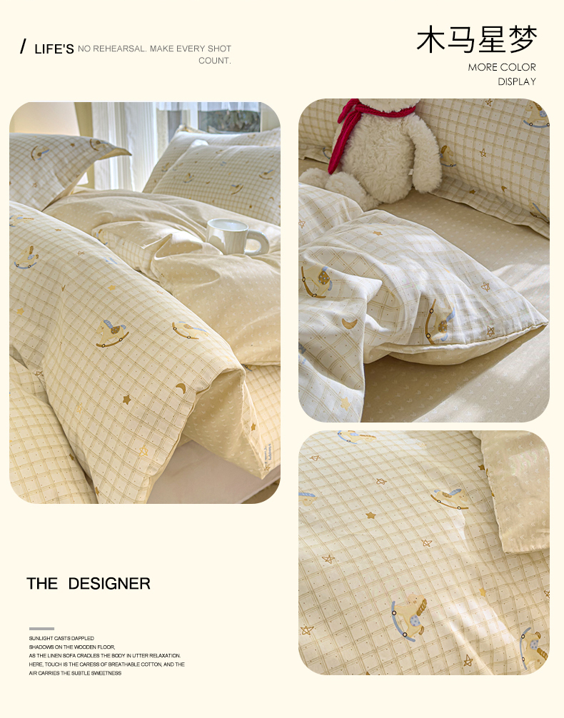 (总)洺兰家居 2026新款全棉纯棉13070小清新印花四件套,艾丽娅,疯狂小汽车,格纹小熊,狗狗日记,海岛假日,卡特,蓝调记忆,迷你小屋,魔幻南瓜,木马星梦,若兰,森林派对,童年派对,晚风细语,汪星人,小星星,星空奇遇,幸运四叶草,伊春园,优雅生活,栀子花
