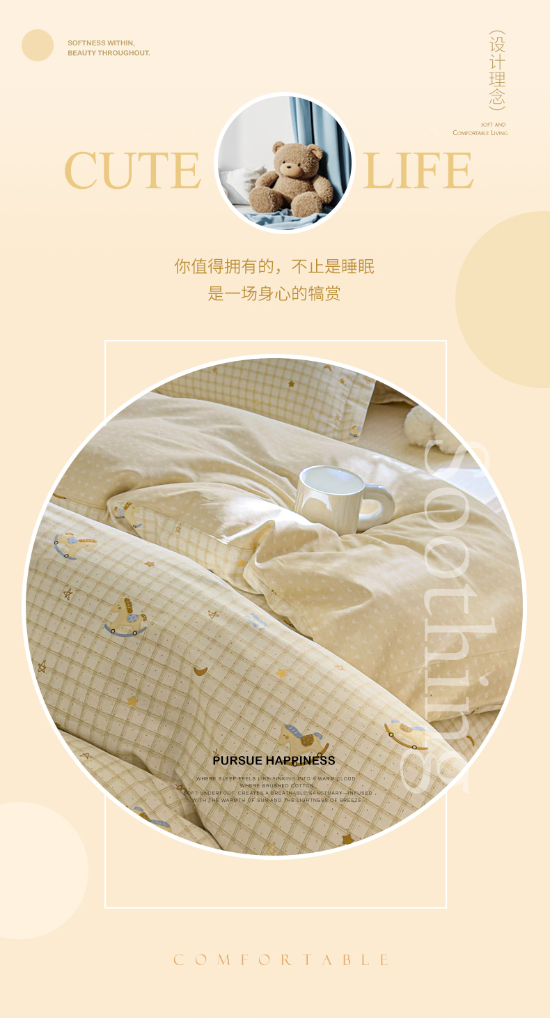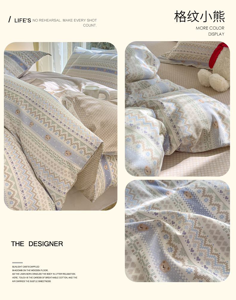 洺兰家居 2025新款13070全棉单被套 波波熊,波波熊