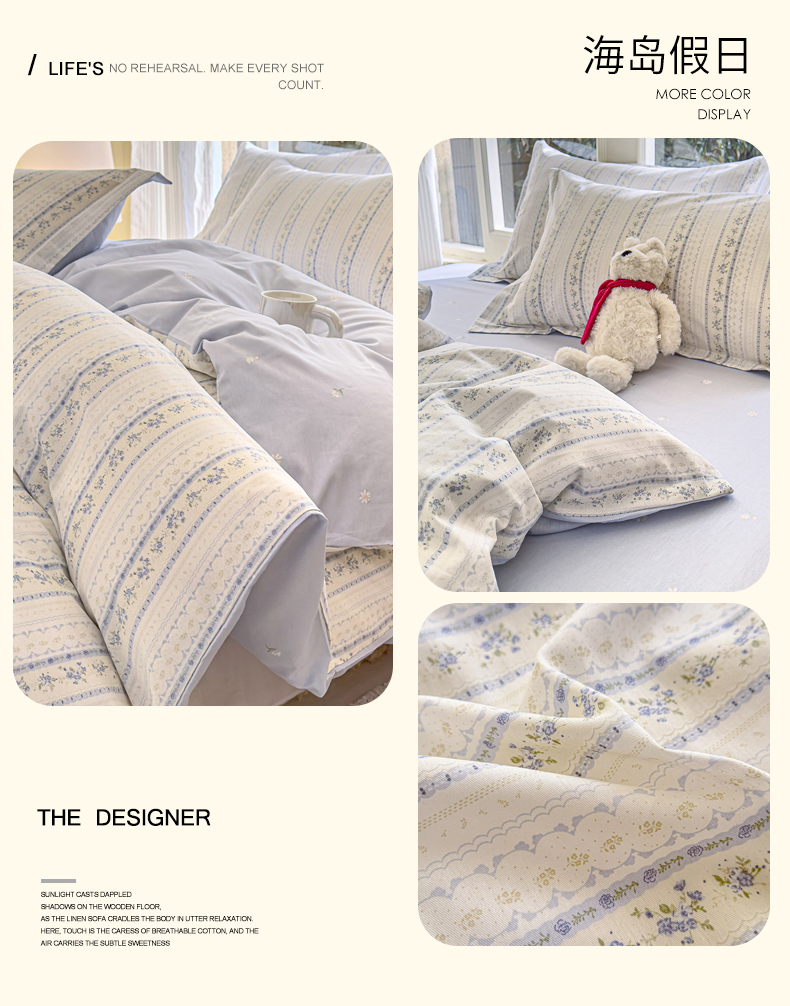 (总)洺兰家居 2026新款全棉纯棉13070小清新印花四件套,艾丽娅,疯狂小汽车,格纹小熊,狗狗日记,海岛假日,卡特,蓝调记忆,迷你小屋,魔幻南瓜,木马星梦,若兰,森林派对,童年派对,晚风细语,汪星人,小星星,星空奇遇,幸运四叶草,伊春园,优雅生活,栀子花