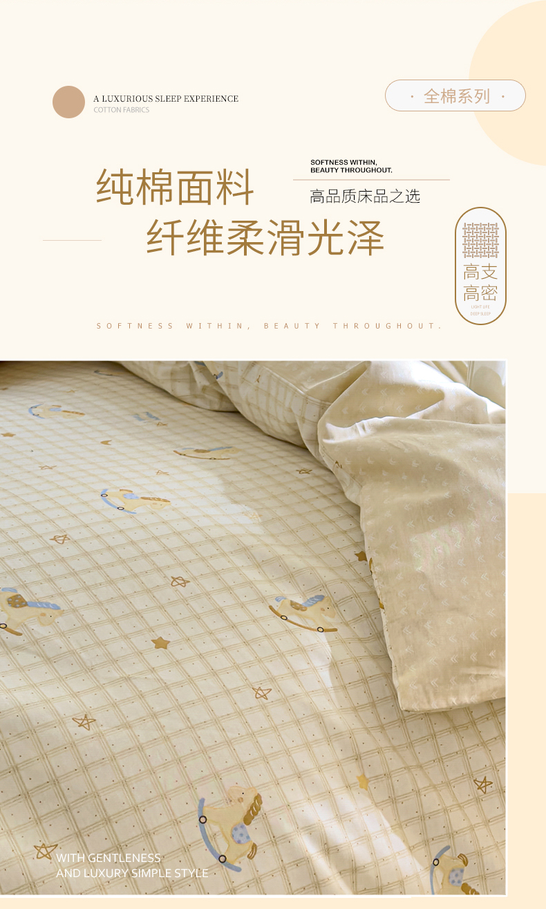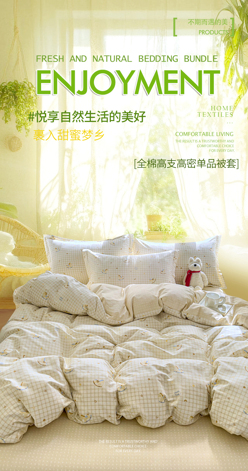 商品名称:洺兰家居 2026新款全棉纯棉13070小清新印花单被套被套单件 木马星梦