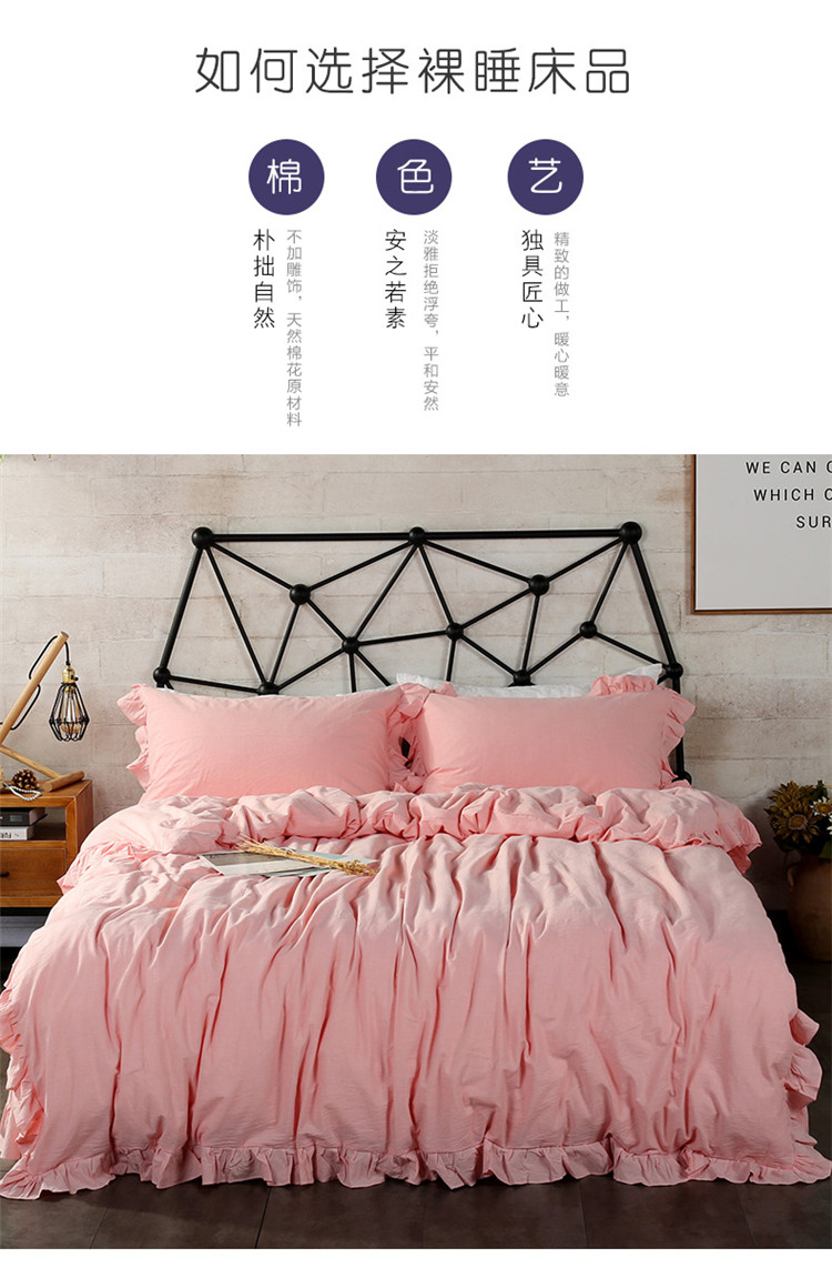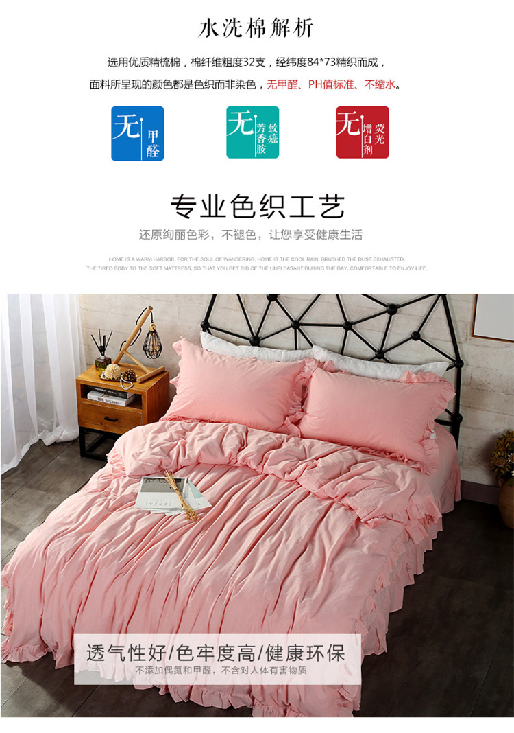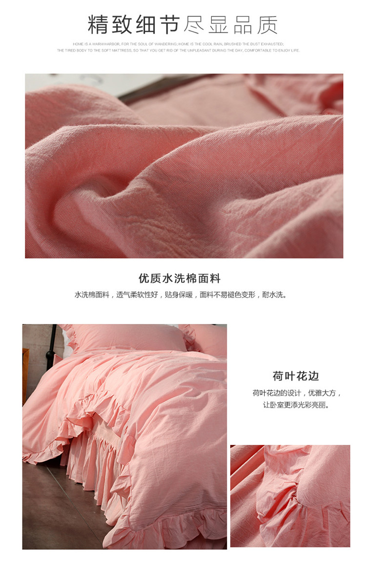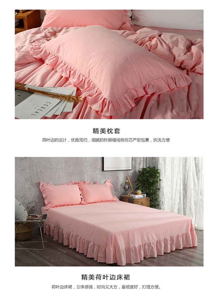 商品名称:福丽莱 全棉色织水洗棉四件套1.8m床(床裙款)中粉