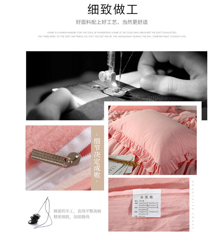 福丽莱 全棉色织水洗棉四件套1.8m床(床裙款)中粉