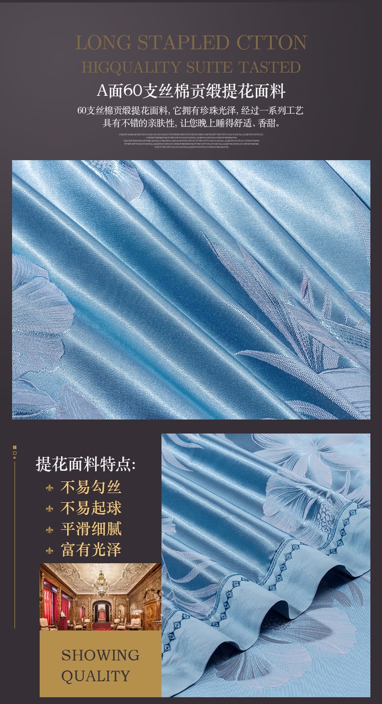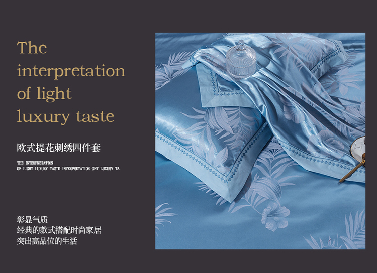 柔觉家纺 天丝刺绣贡缎提花全棉四件套,水汐-绸缎兰