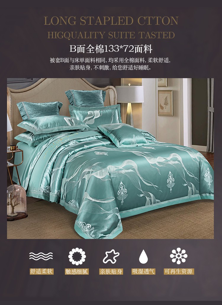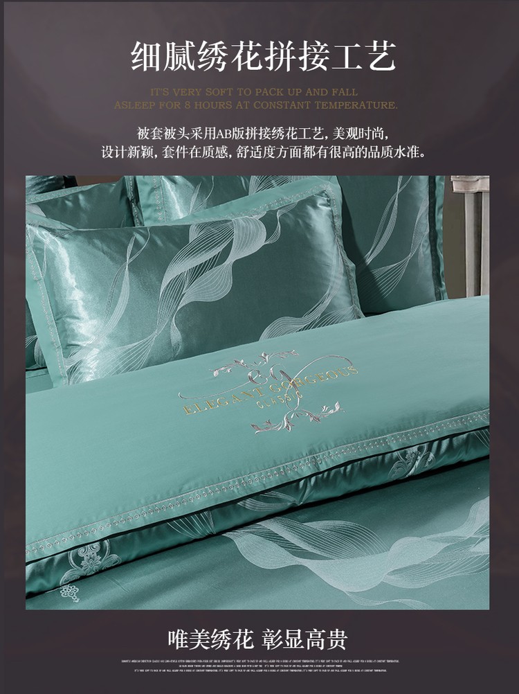 柔觉家纺 天丝刺绣贡缎提花全棉四件套,水汐-绸缎兰