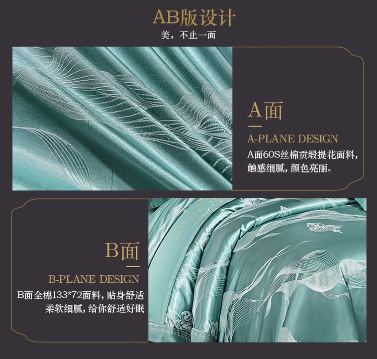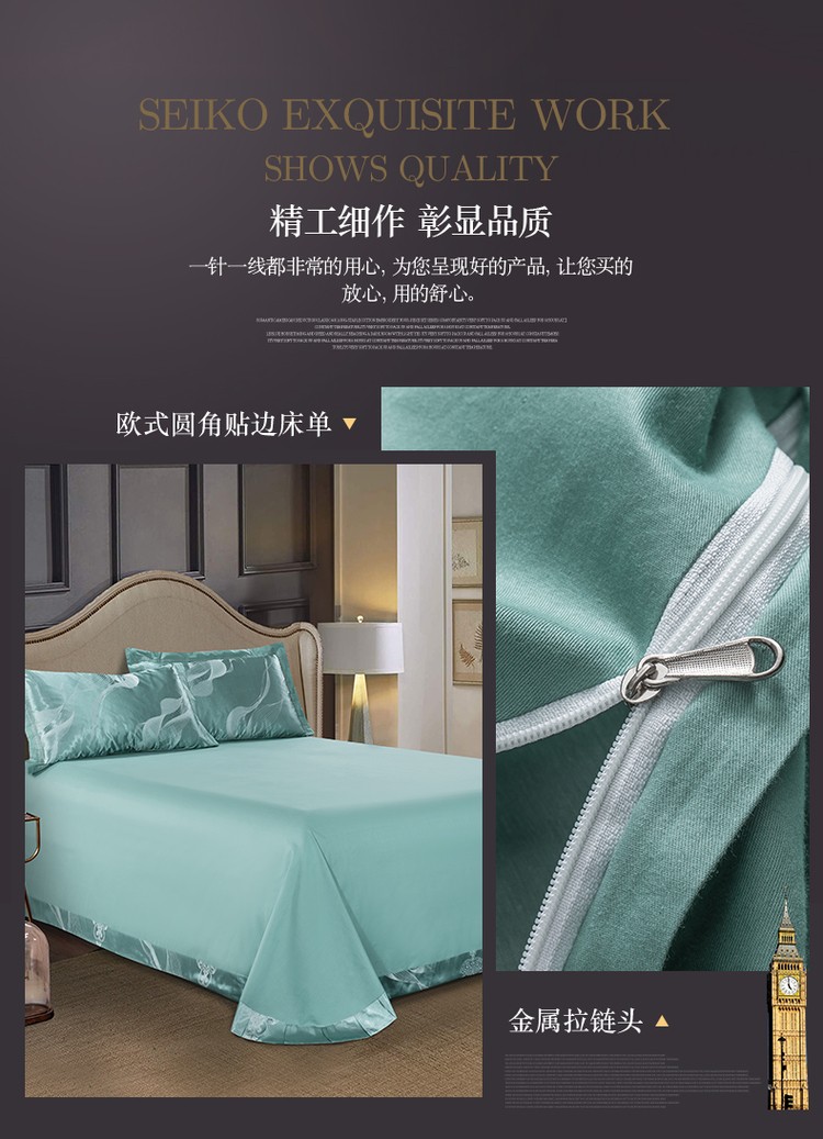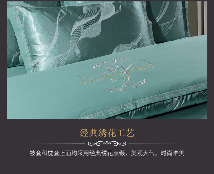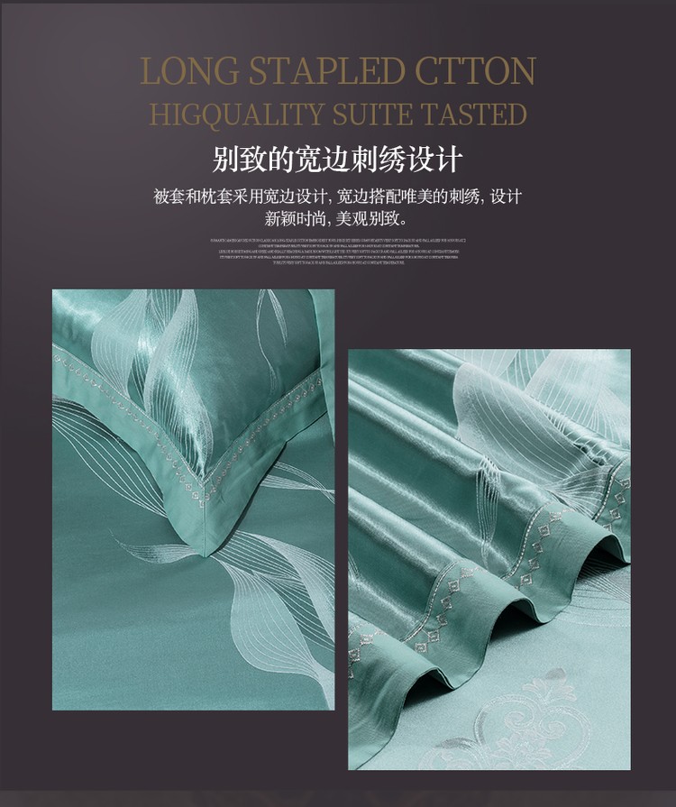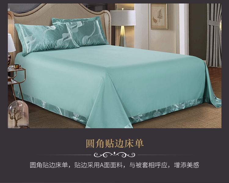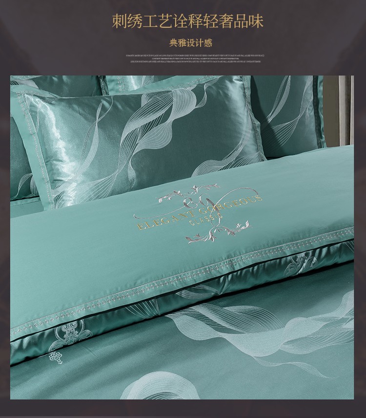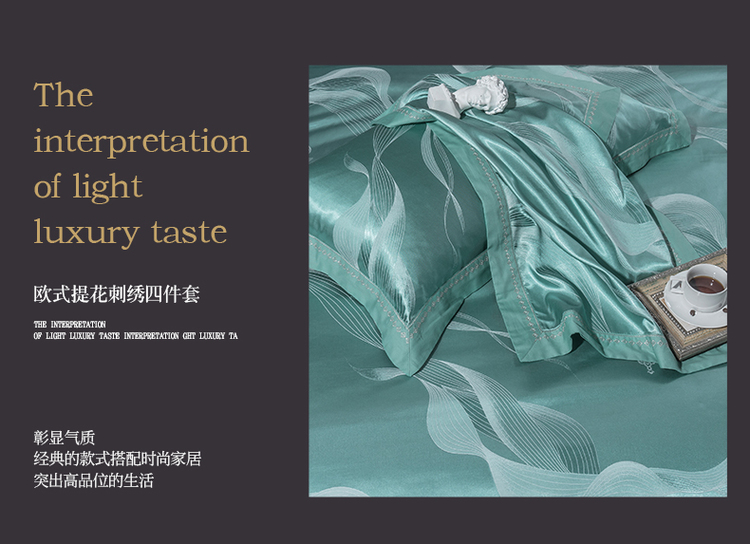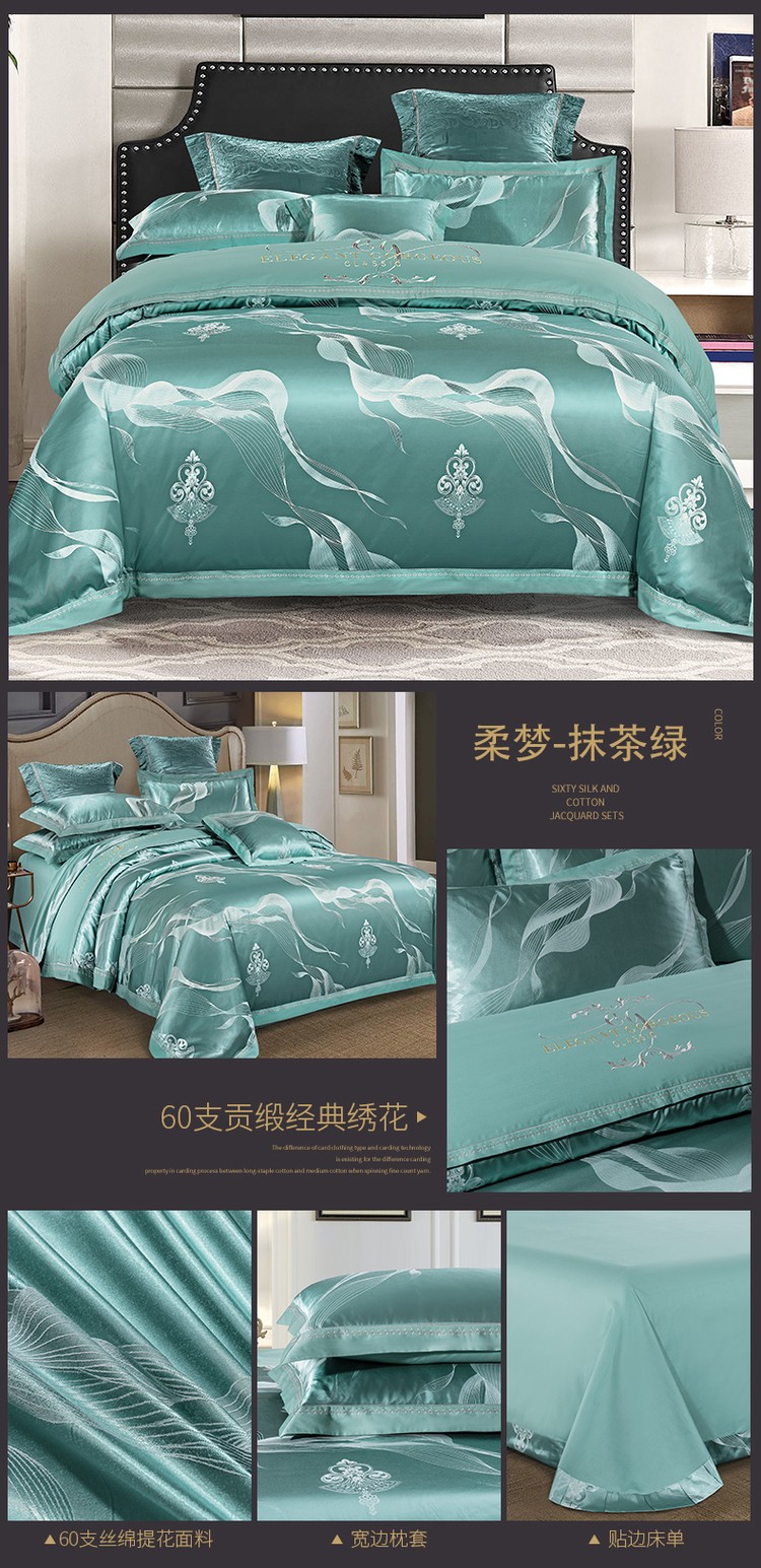 柔觉家纺 天丝刺绣贡缎提花全棉四件套,柔梦-抹茶绿