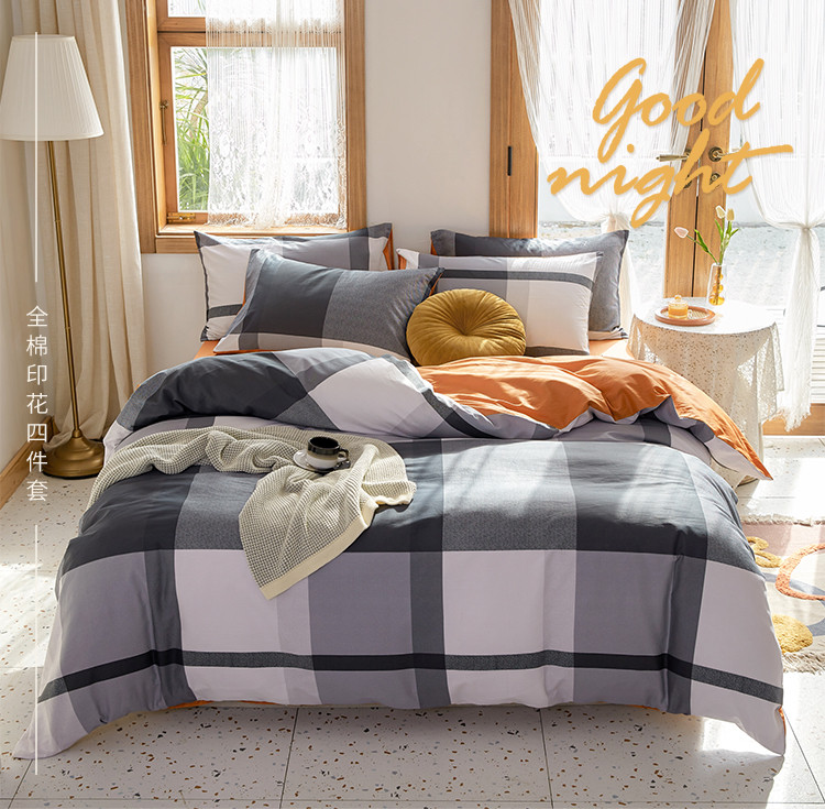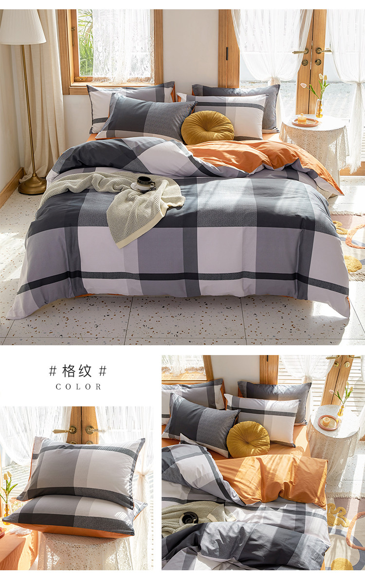商品名称:仟网汇 2021新款春夏全棉北欧风几何系列四件套 格纹