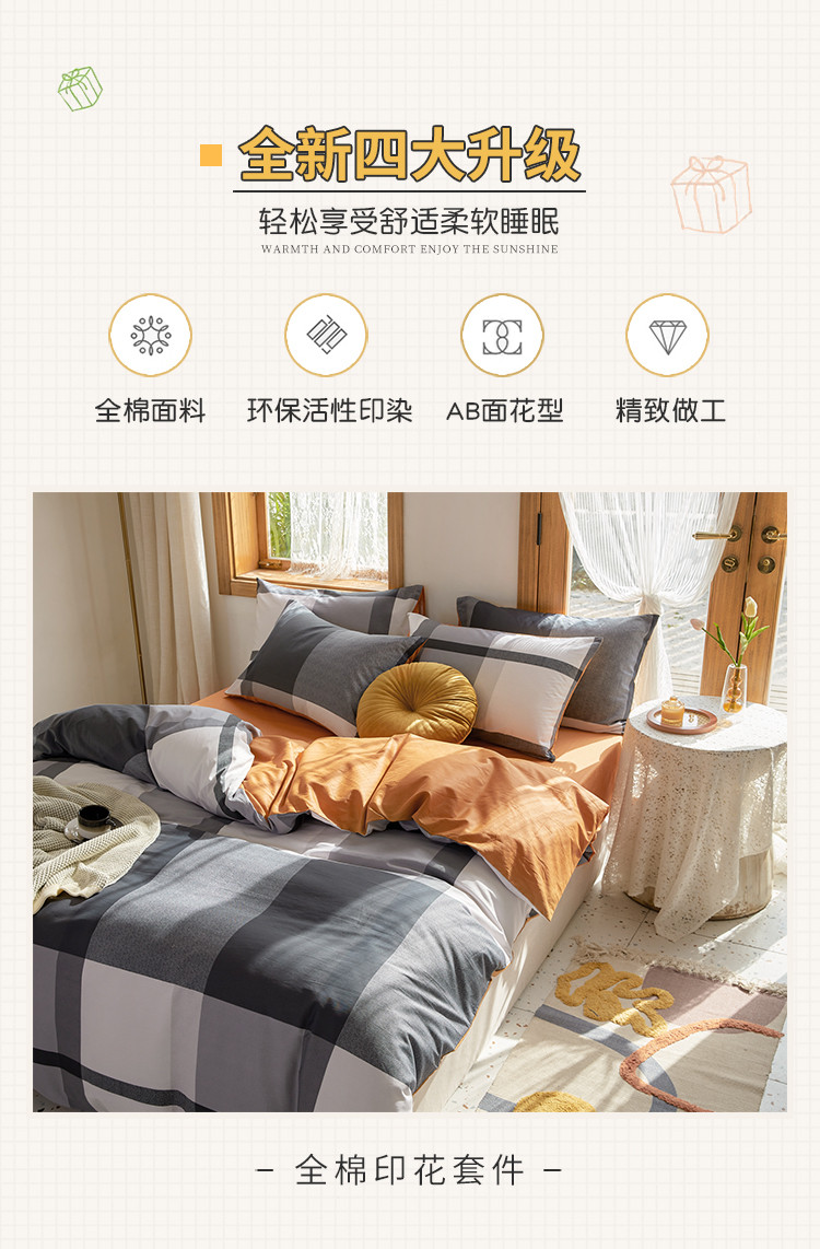 (总)仟网汇 2026新款亲肤舒适仿棉印花床盖四件套,豹纹喵咖,蛋糕派,灰小格,马戏团,萌萌兔,梦幻灰,梦幻紫,南瓜季,泡芙小象,皮皮狗,奇奇,圣诞夜,甜心喵,童趣,五彩斑斓,小木马,小时光,小熊头,鱼多多,逐梦,组合图仅供参考不可下单