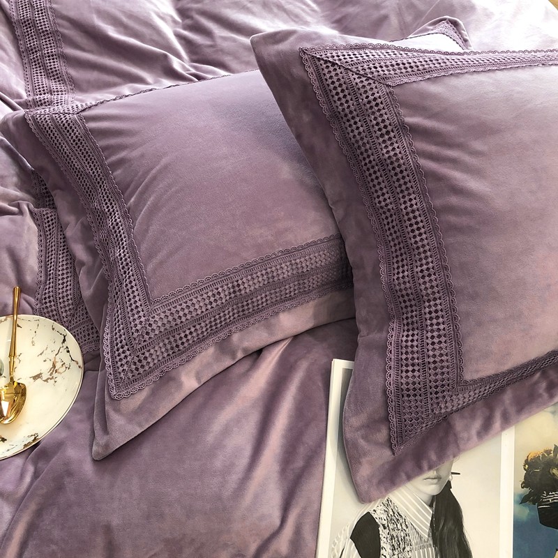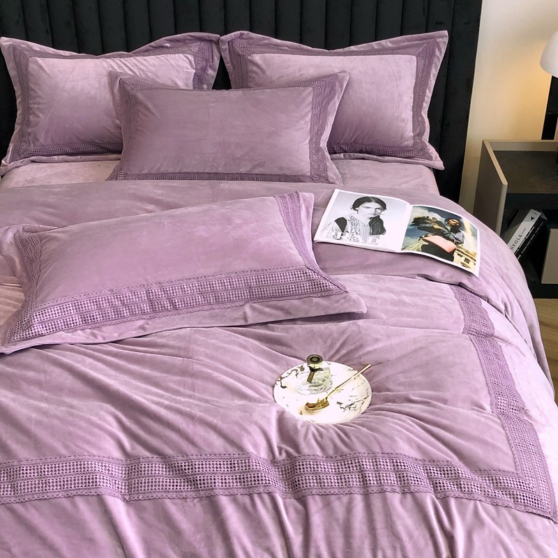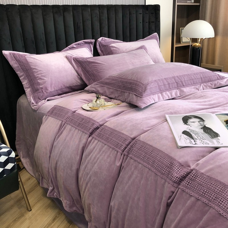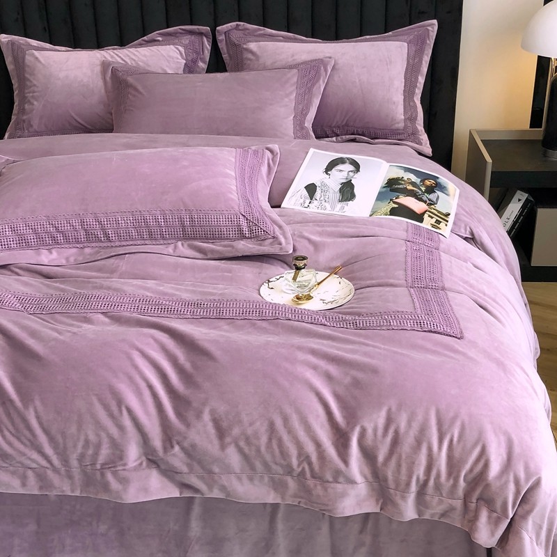 榻尚 2021新款柔肤绒花边款四件套遇见系列 紫