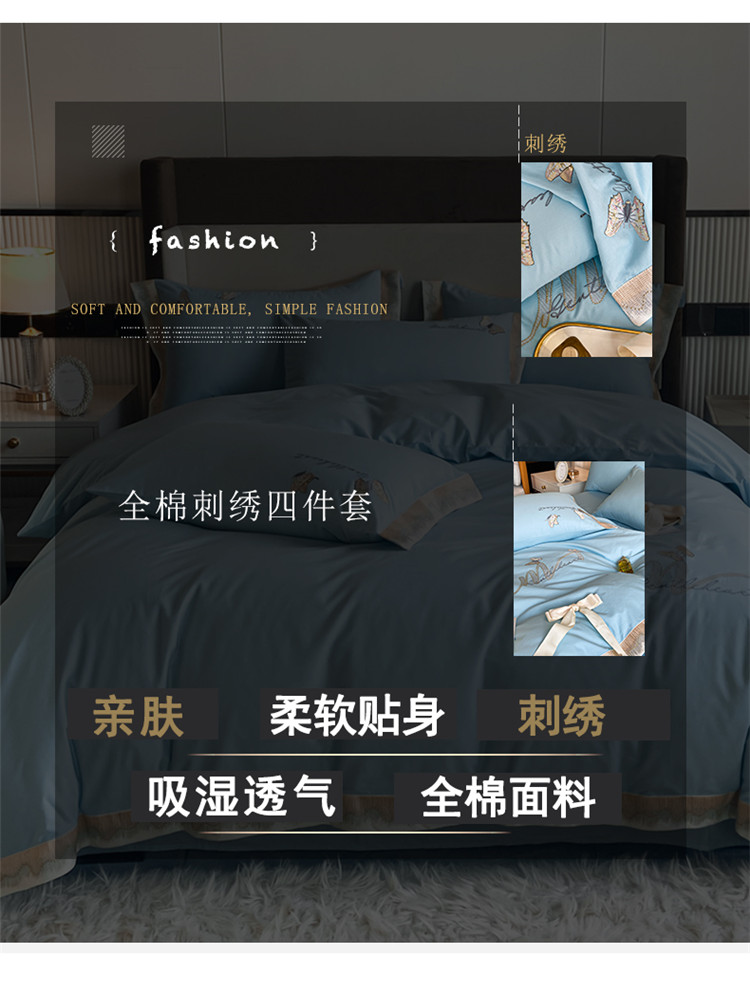 (总)安妮家居 2022新款全棉刺绣四件套-碟之恋