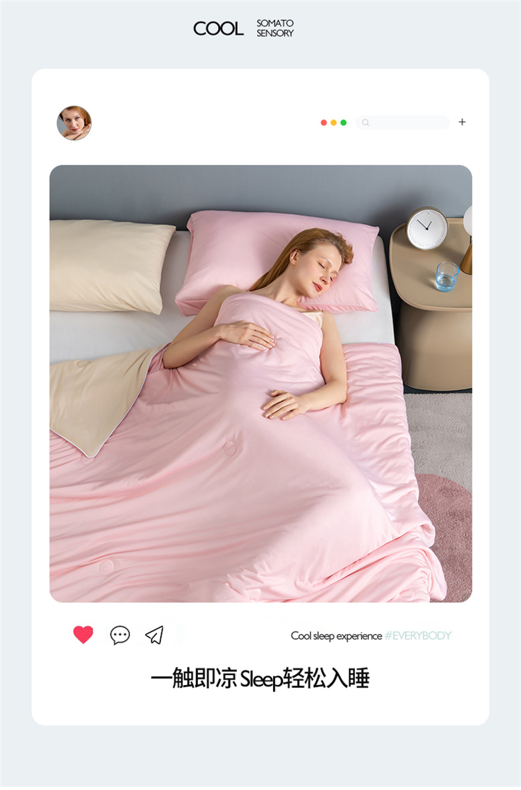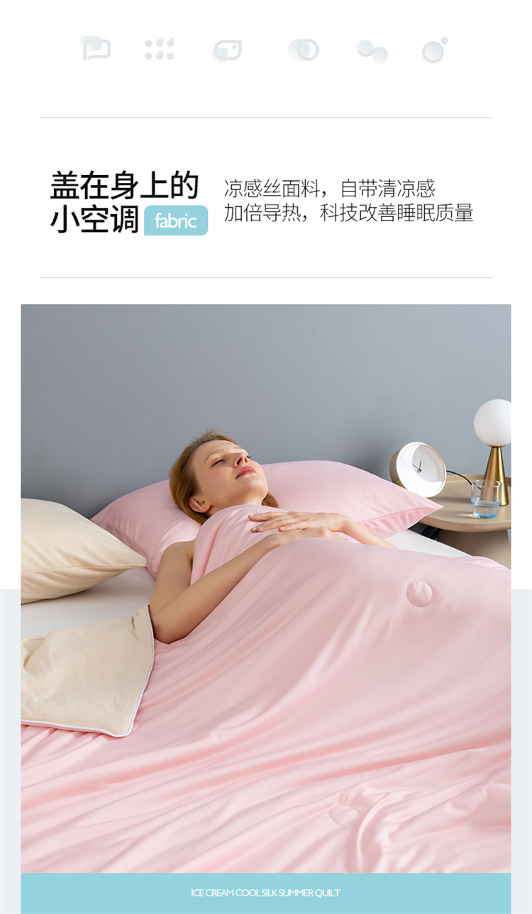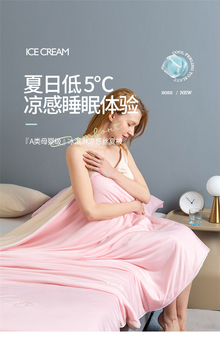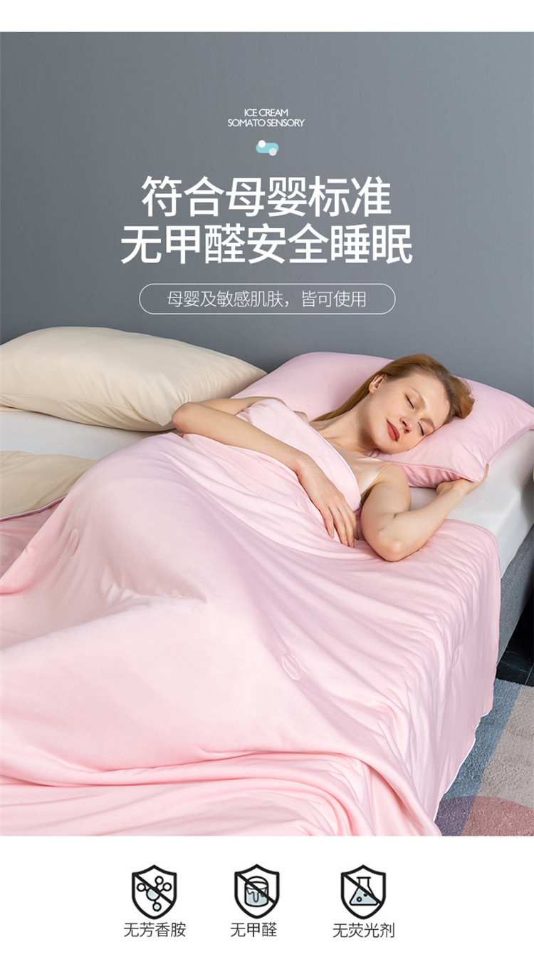 鸣升 新款100%锦纶A类凉感丝夏被冰淇淋空调被网红直播 粉拼米