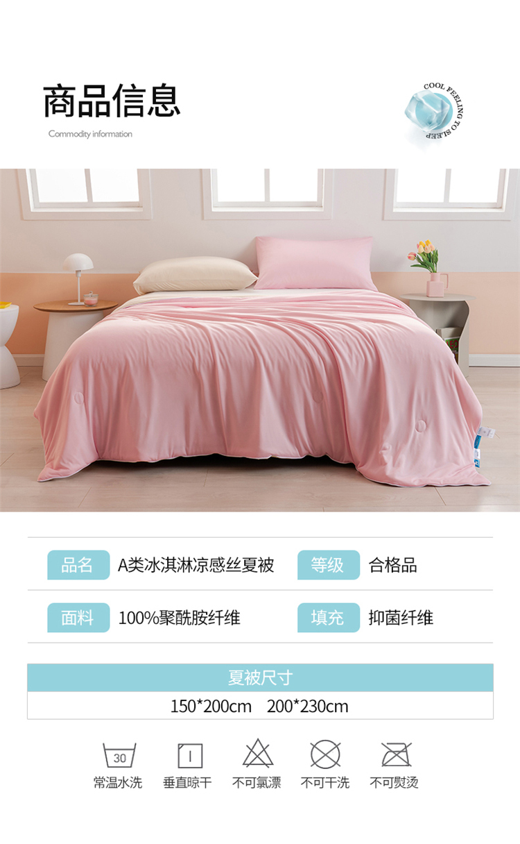 商品名称:鸣升 新款100%锦纶A类凉感丝夏被冰淇淋空调被网红直播 粉拼米