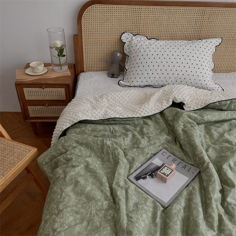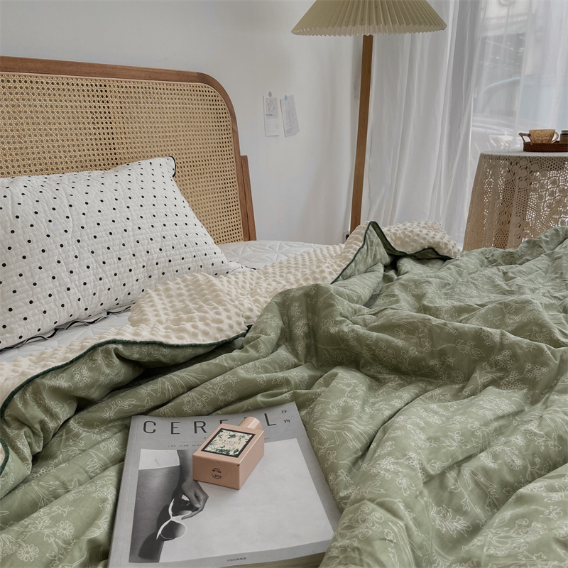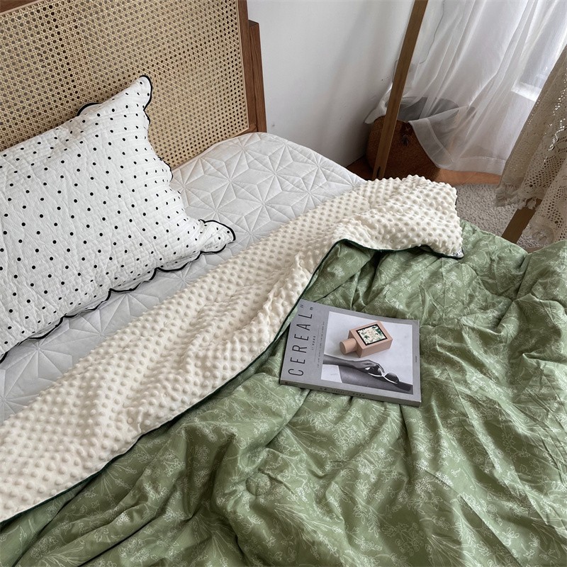源启生活 2022新款嵌绳包边韩国豆豆四季被被子被芯 绿荫