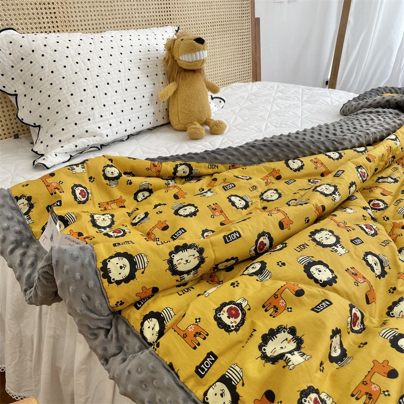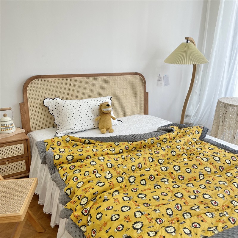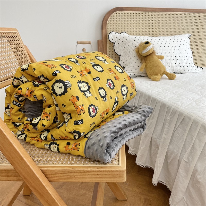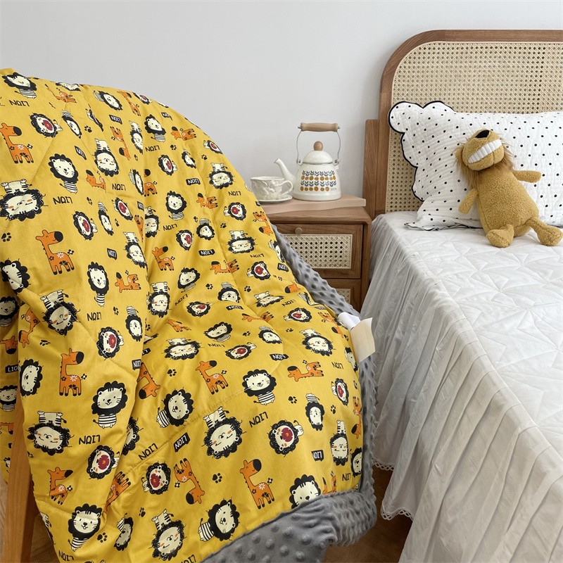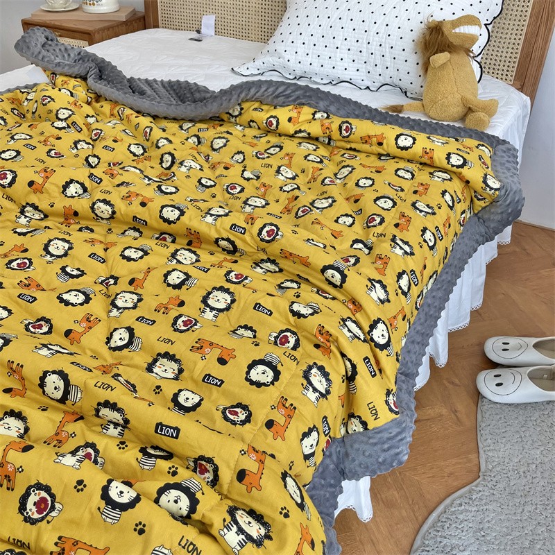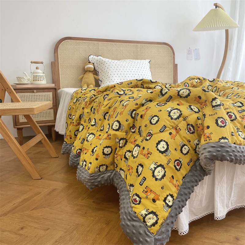 源启生活 2022新款韩国手工包边豆豆单人被被子被芯 小狮子