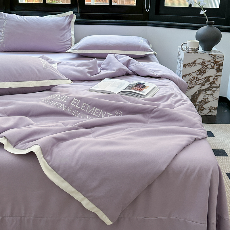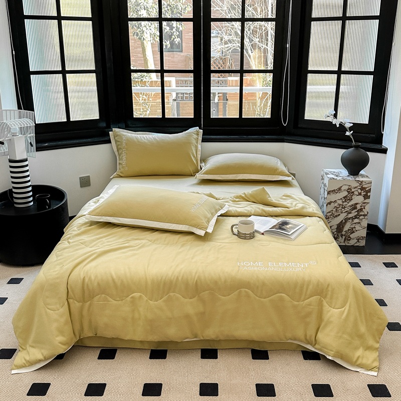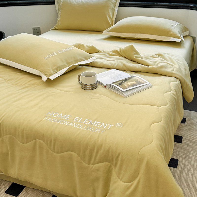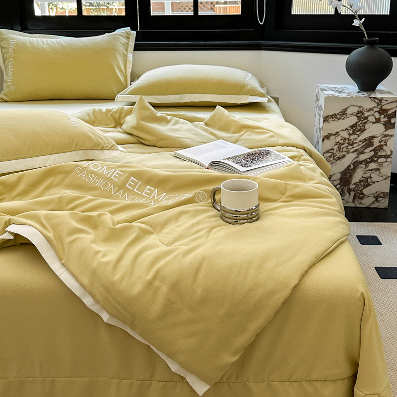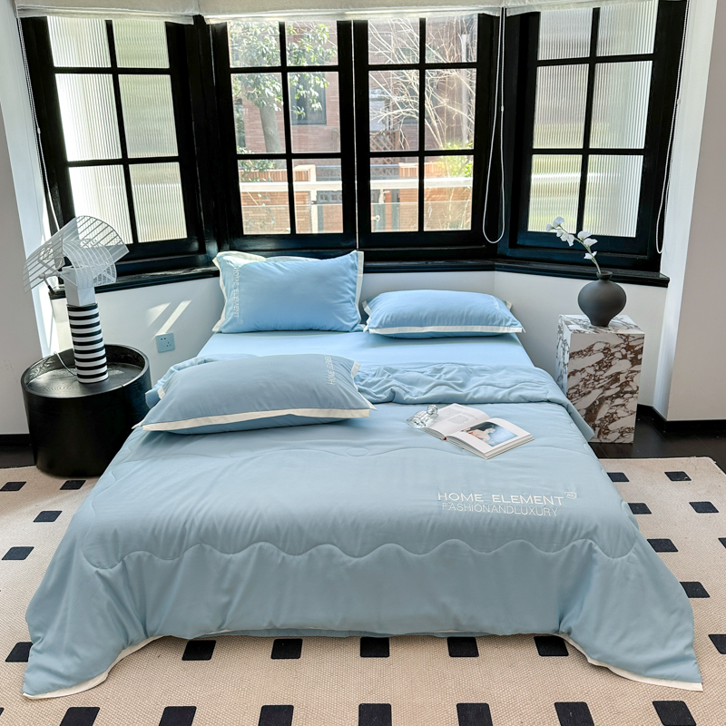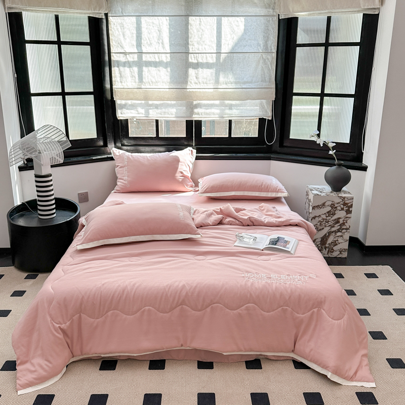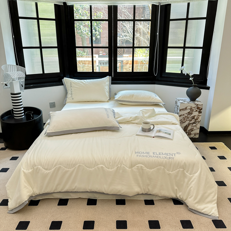 (总)仟网汇 2023新款棉麻刺绣纯色米兰系列夏被四件套