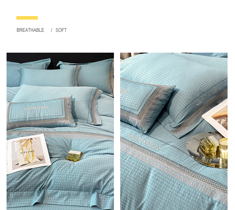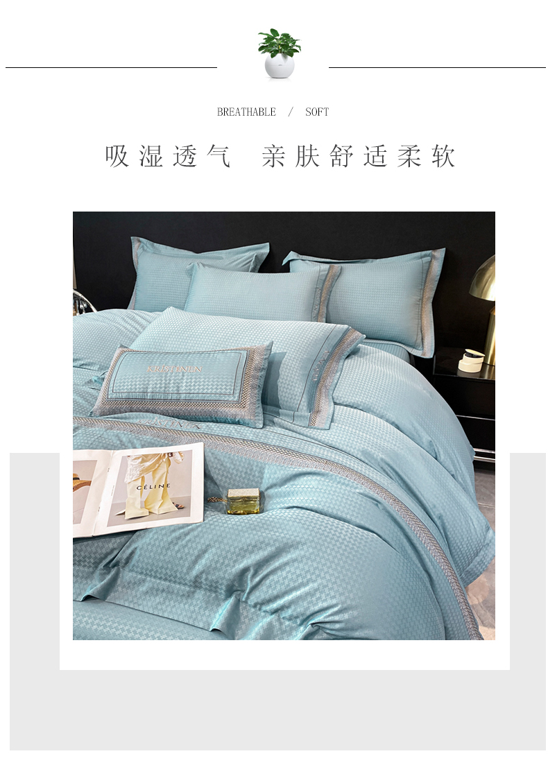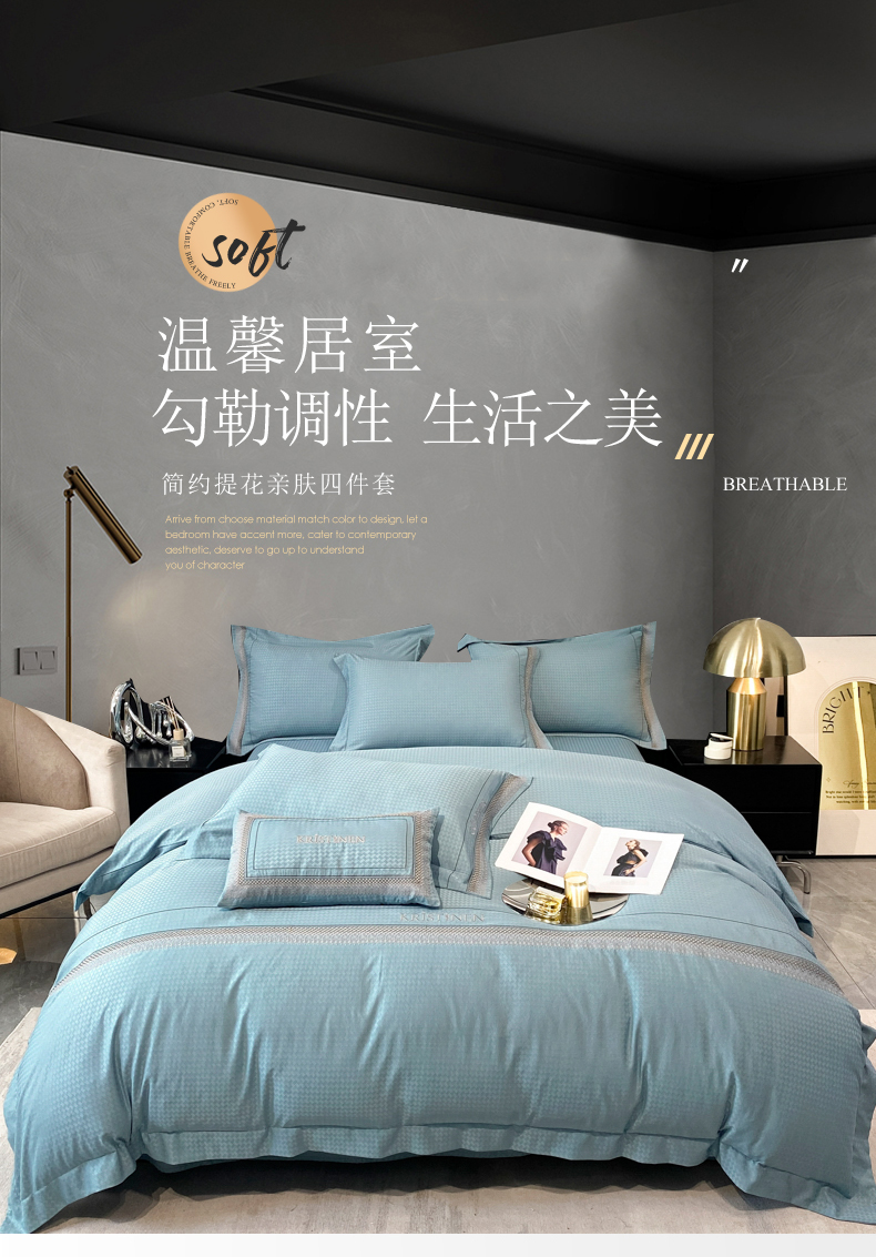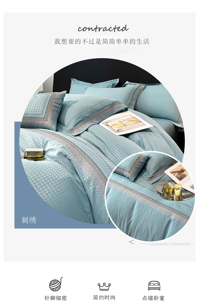 商品名称:安妮 2023新款提花刺绣四件套-缇娜夫人 缇娜夫人-星蓝