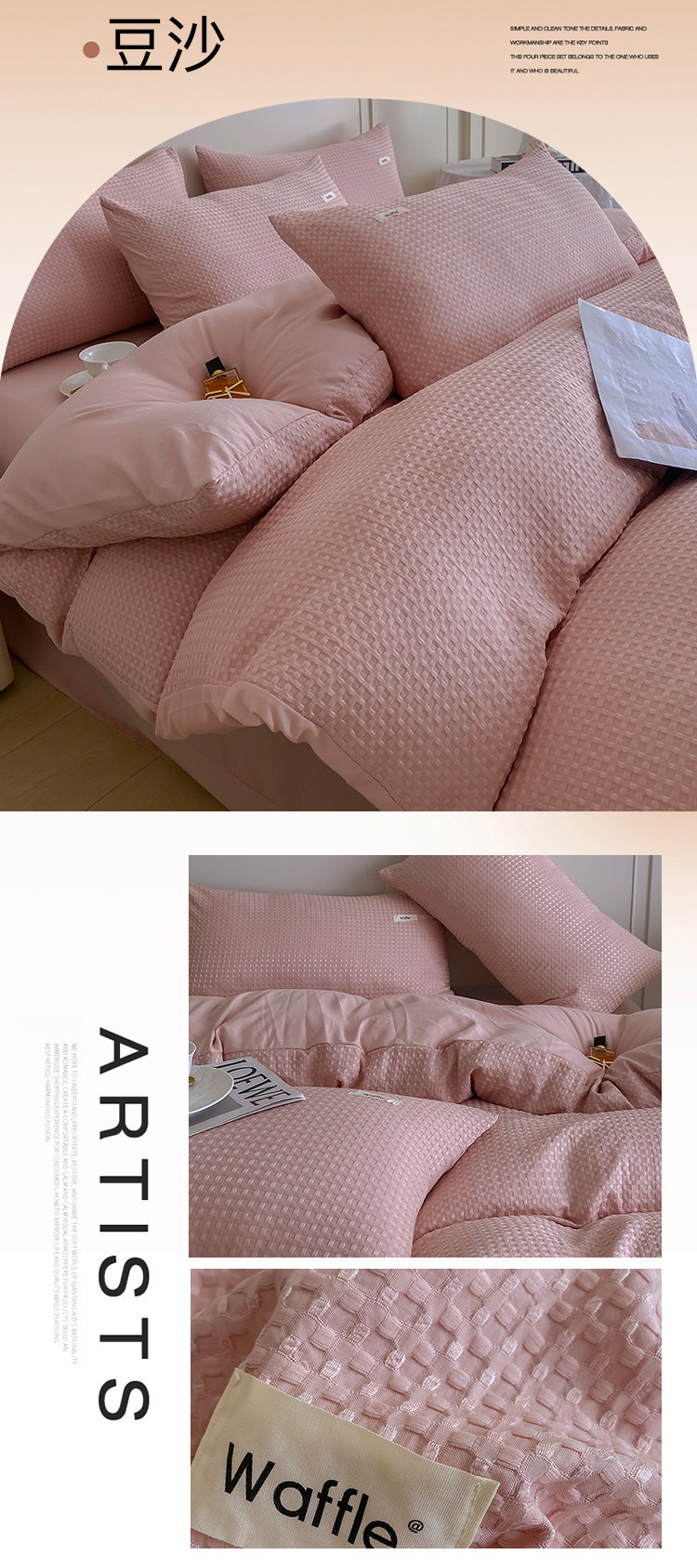当前位置: 91家纺网 > 商品网购 > 床品套件 > 四件套 > 全棉普通四件套 > 仟网汇 2023爆款华夫格-森语系列 四件套 豆沙
