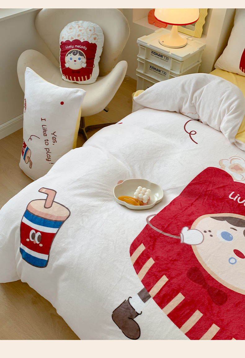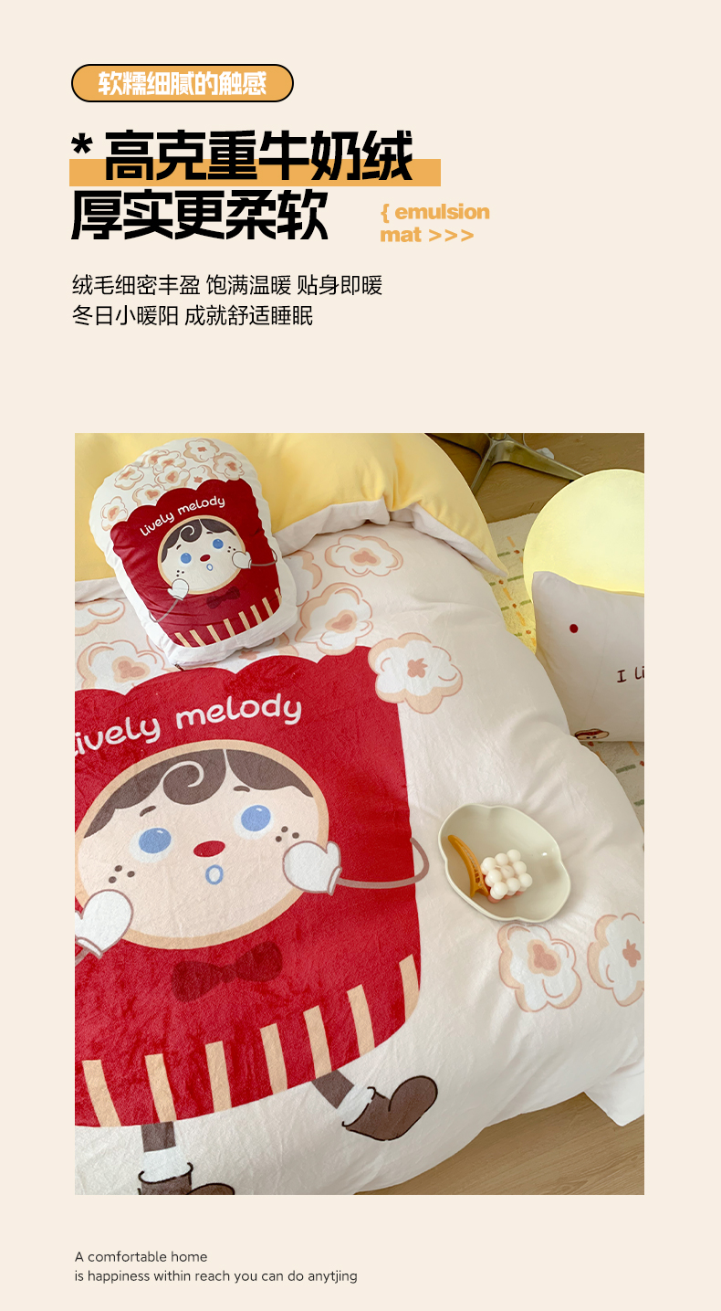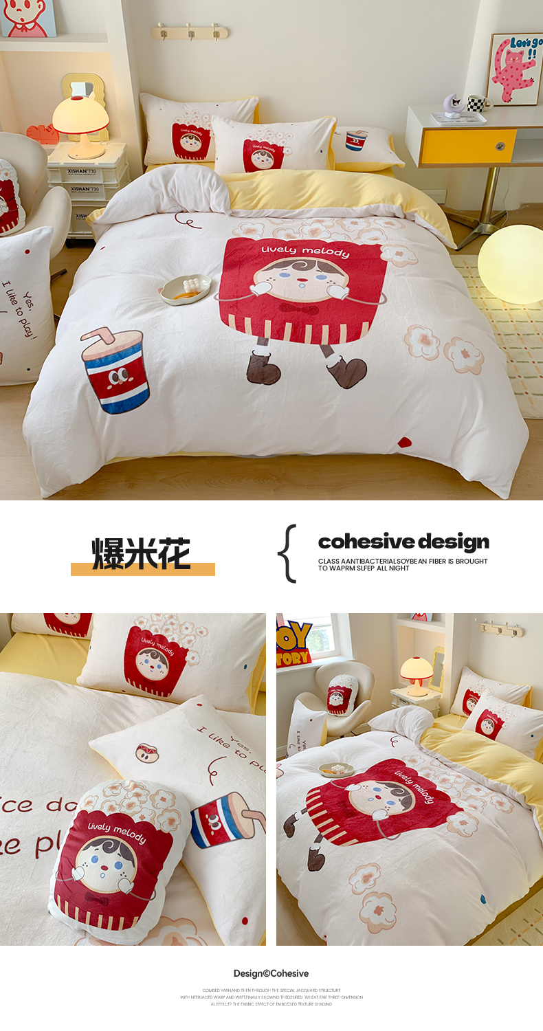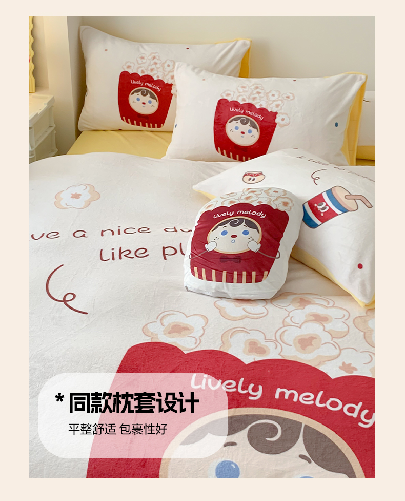 商品名称:澳萝拉2023新款大版数码牛奶绒五件套配送同款小抱枕 爆米花