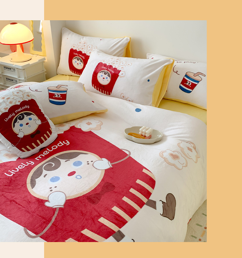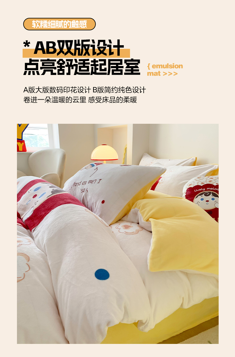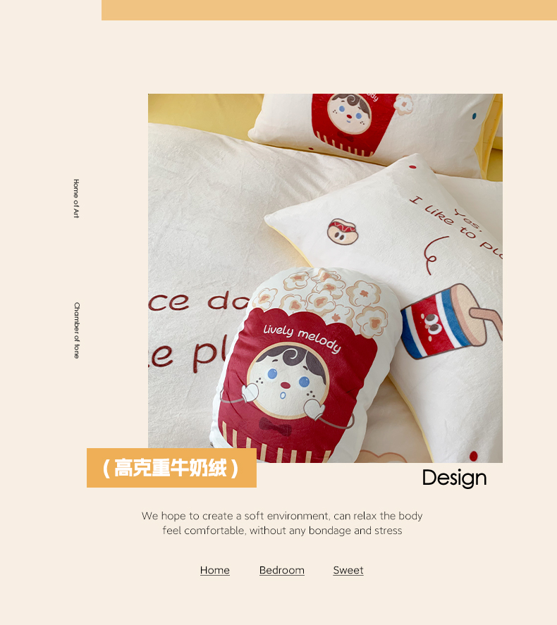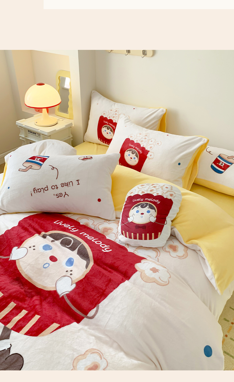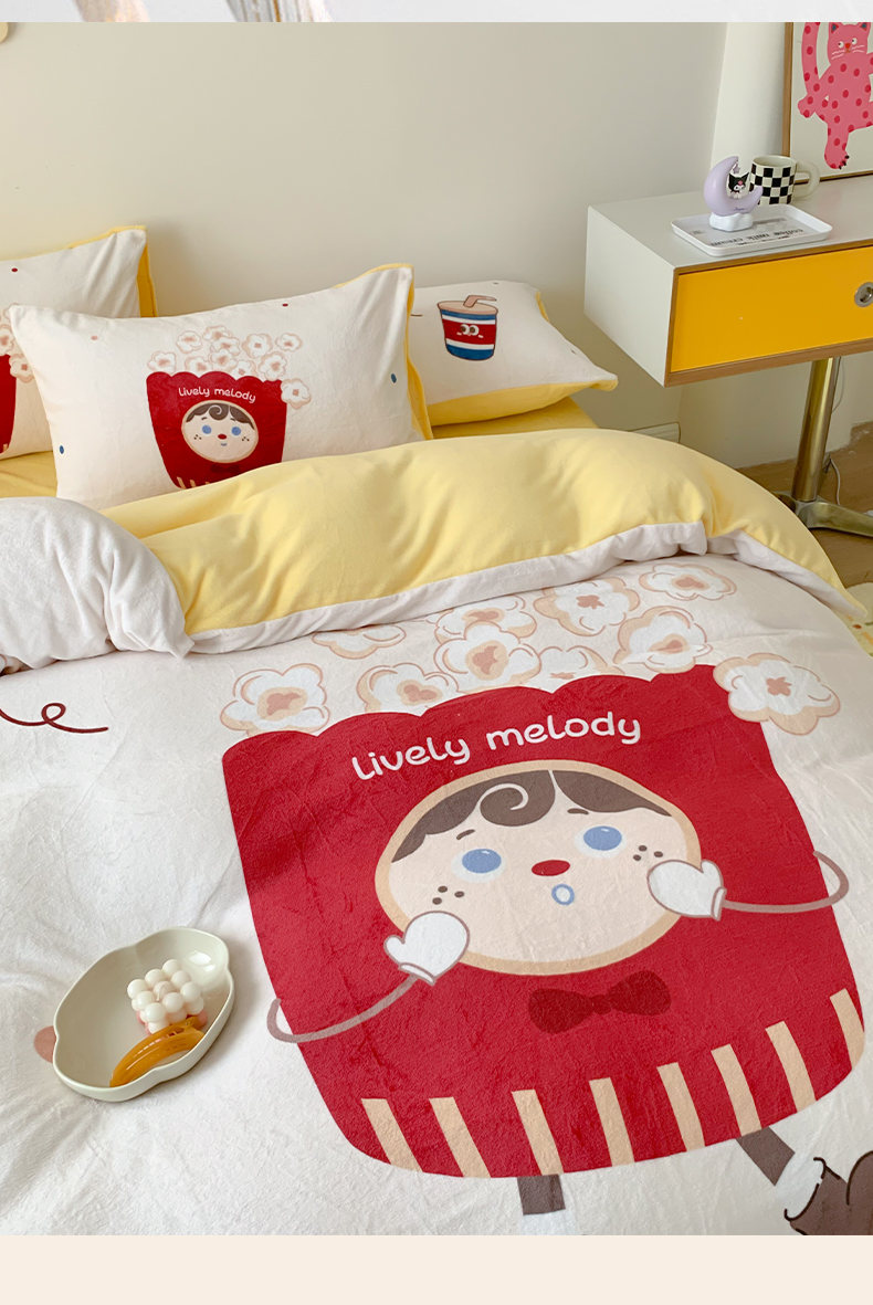商品名称:澳萝拉2023新款大版数码牛奶绒五件套配送同款小抱枕 爆米花