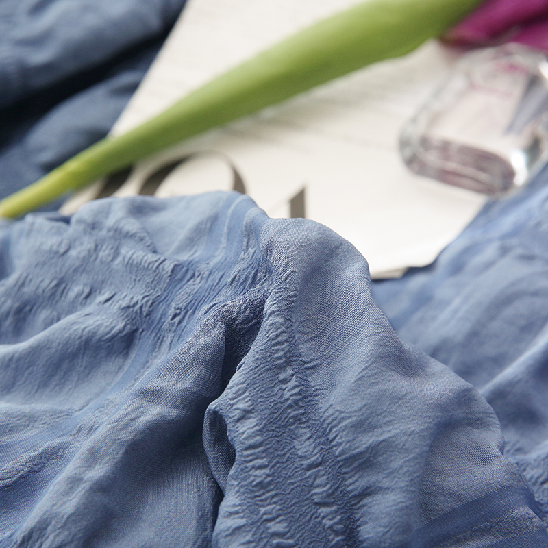 商品名称:仟网汇 2025新款韩版简约方格泡泡纱四件套 夏被四件套 蔚蓝