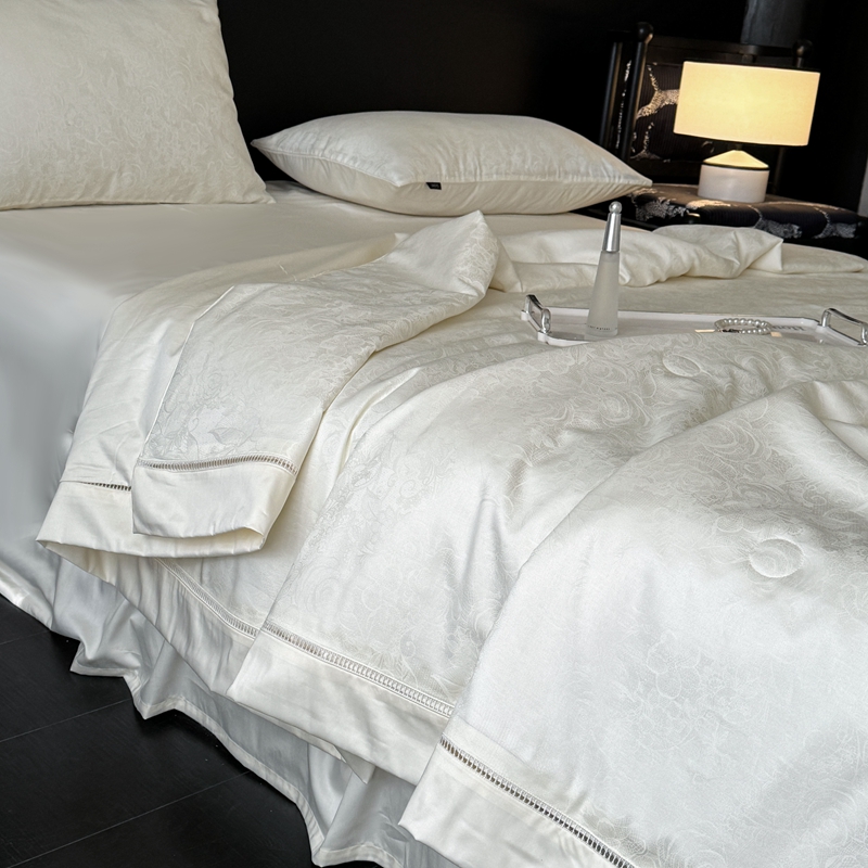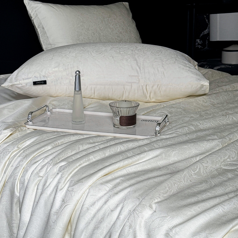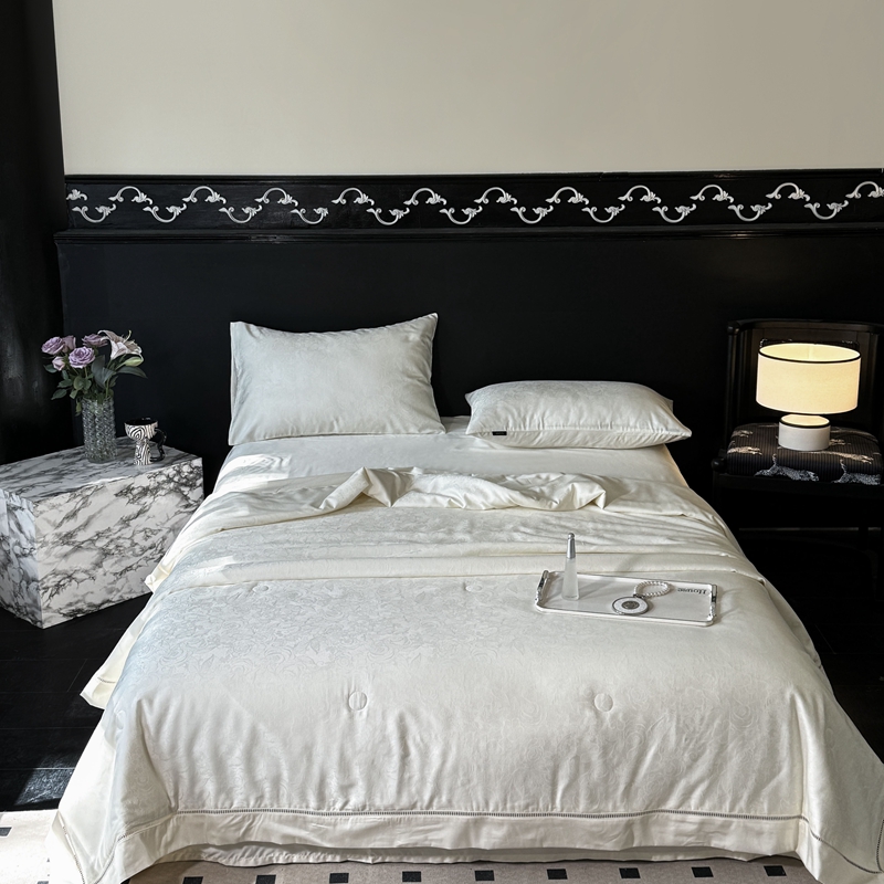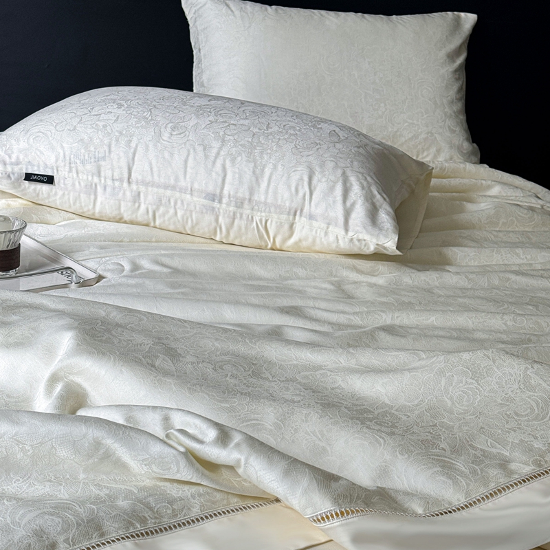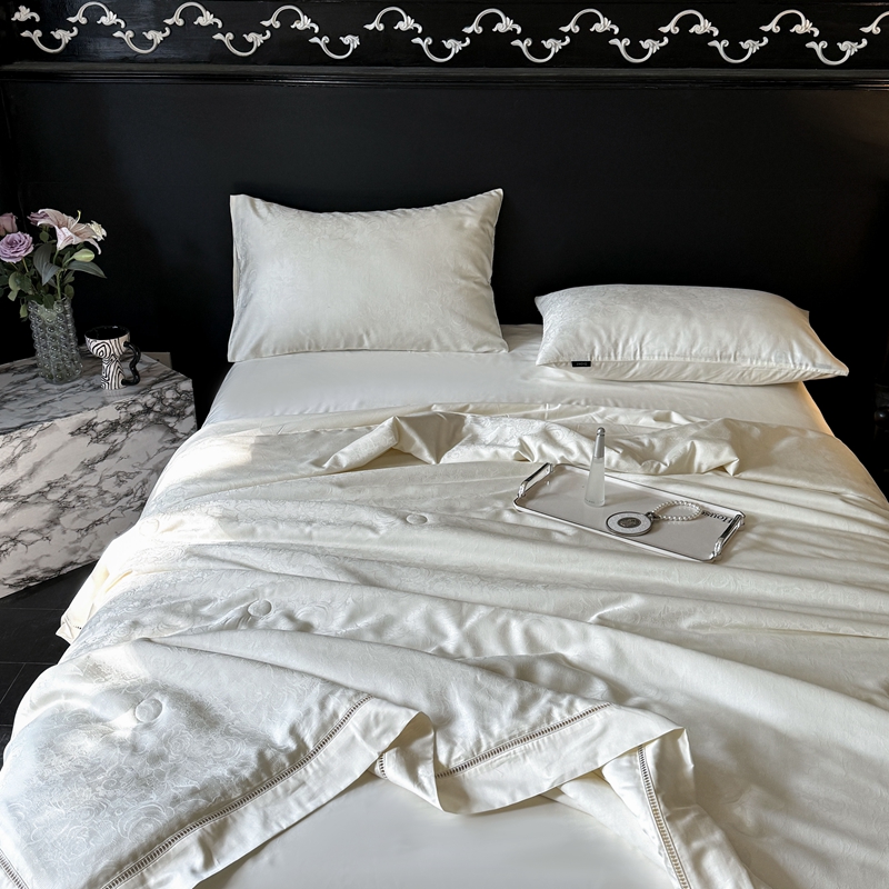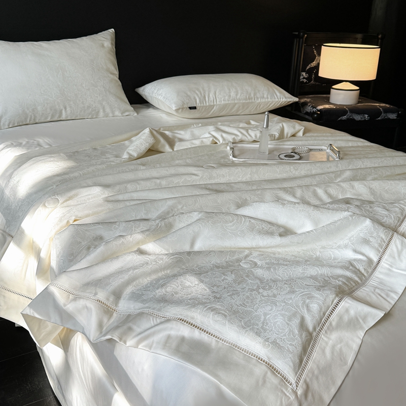 商品名称:娇逸家居 2024新款100支天丝棉贡缎提花夏被(可配同款床单枕套为夏被四件套) 暮光-白