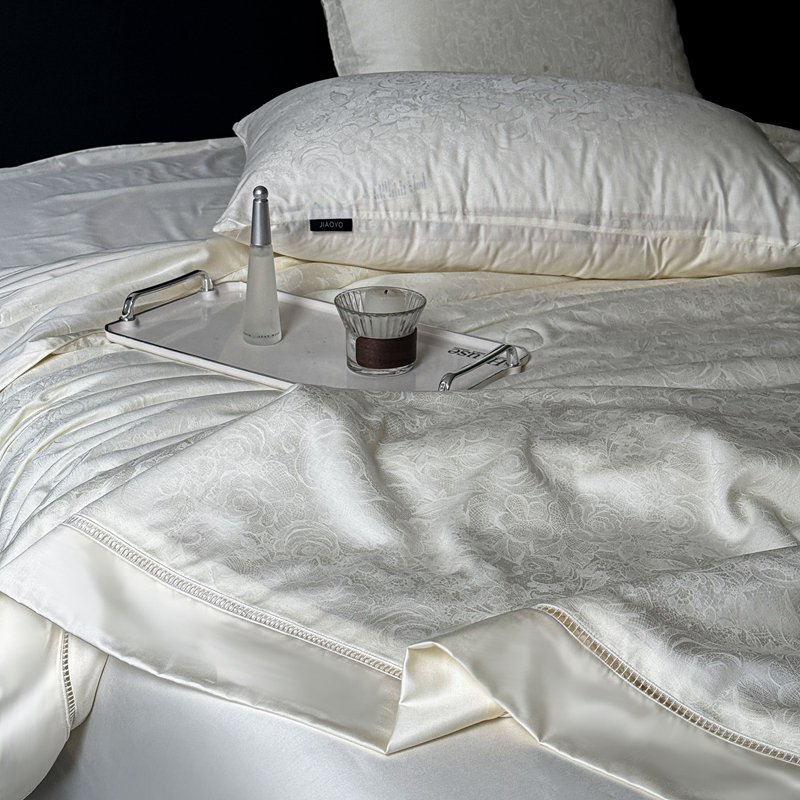 娇逸家居 2024新款100支天丝棉贡缎提花夏被(可配同款床单枕套为夏被四件套) 暮光-白