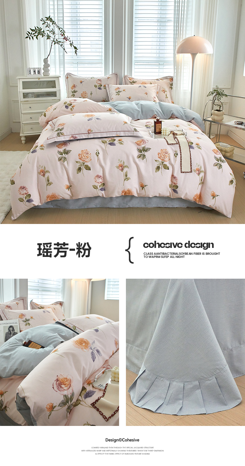 商品名称:沐白家居 2024新款全棉13376全棉印花四件套 瑶芳-粉