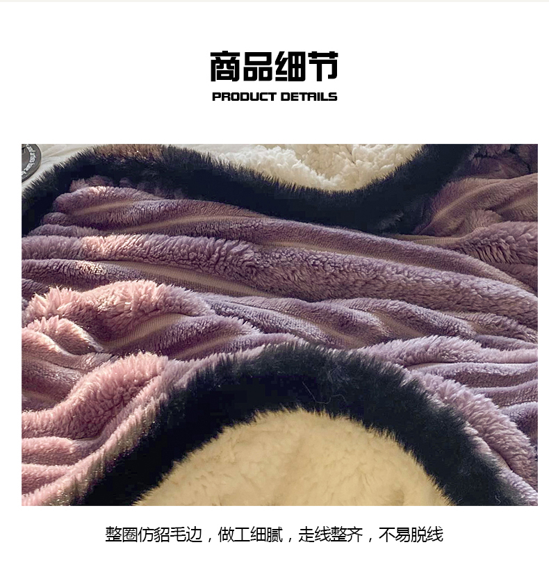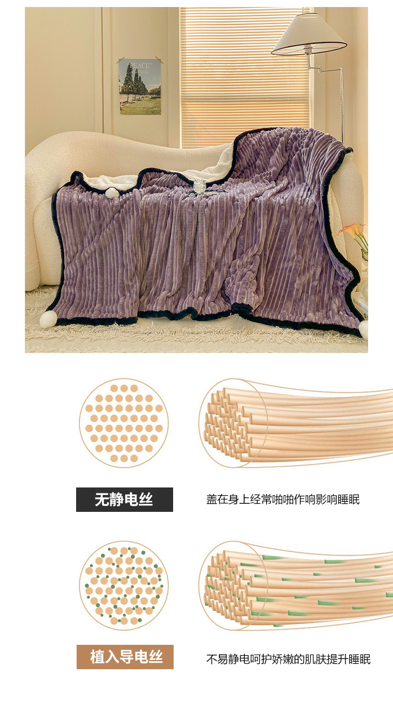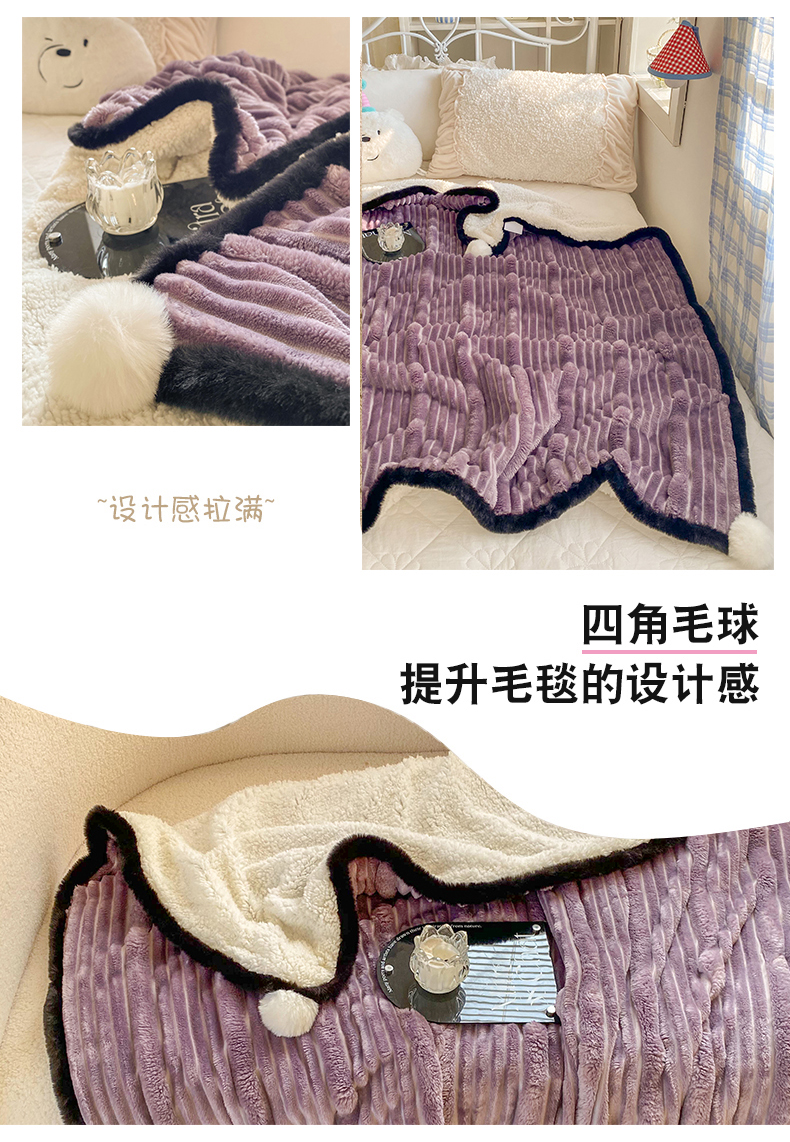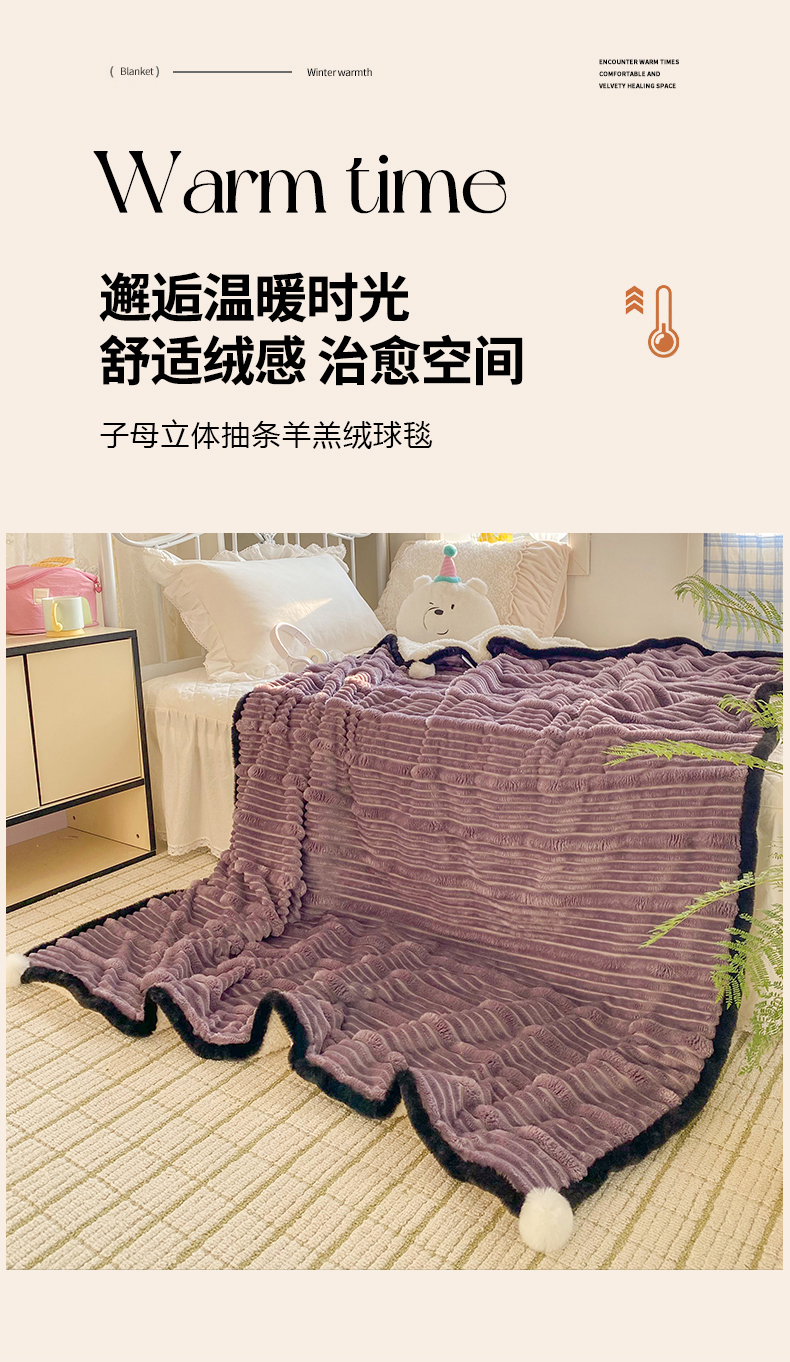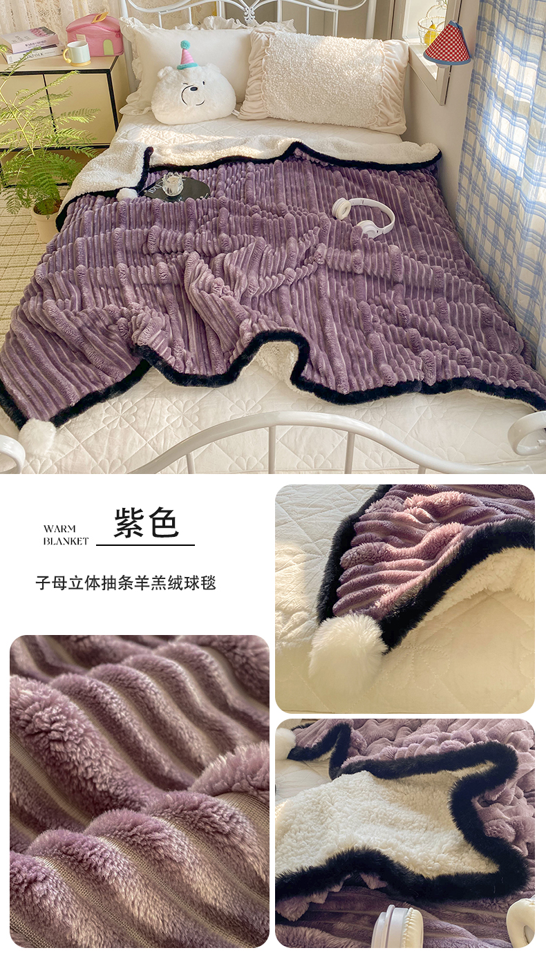 商品名称:潮邦 2025秋冬子母抽条羊羔绒球毯 子母抽条球毯-紫色