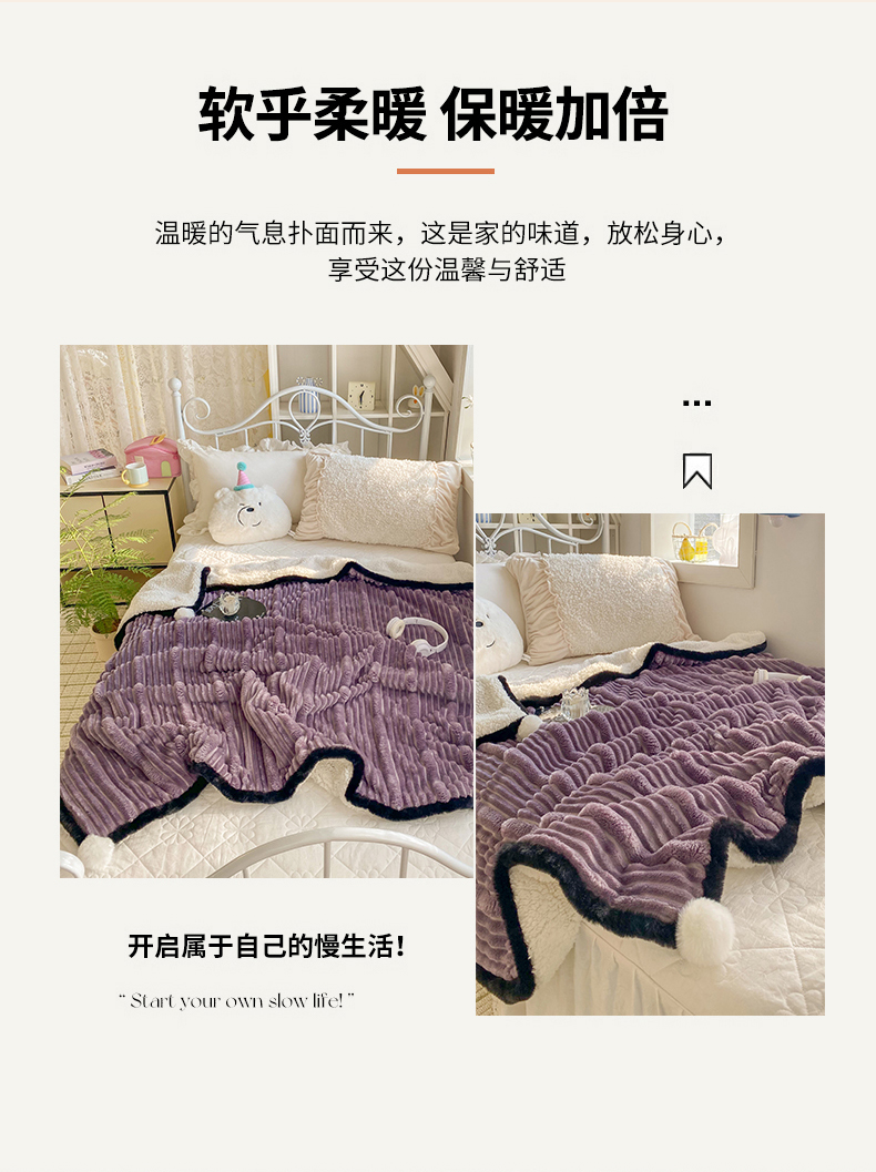 (总)潮邦创意家居2025新款云朵绒灰边舒绵云朵毯,灰边舒绵云朵毯-白色,灰边舒绵云朵毯-粉色,灰边舒绵云朵毯-灰色,灰边舒绵云朵毯-咖色,灰边舒绵云朵毯-绿色,灰边舒绵云朵毯-紫色