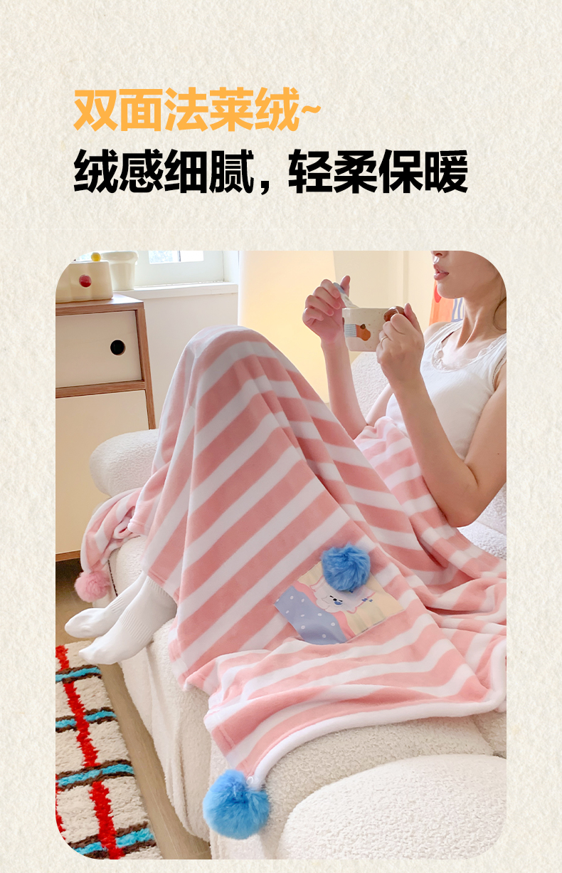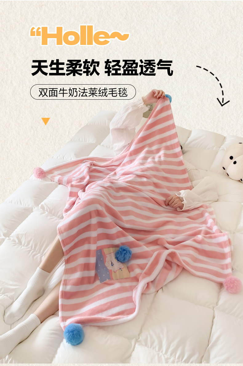 商品名称:澳萝拉 2024新款卡通小清新双面牛奶绒法莱绒毛毯四季盖毯 晚安猫咪