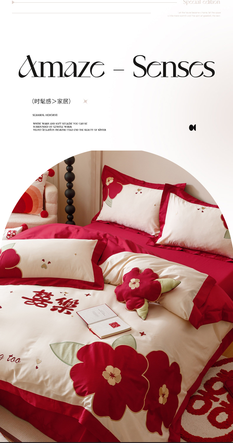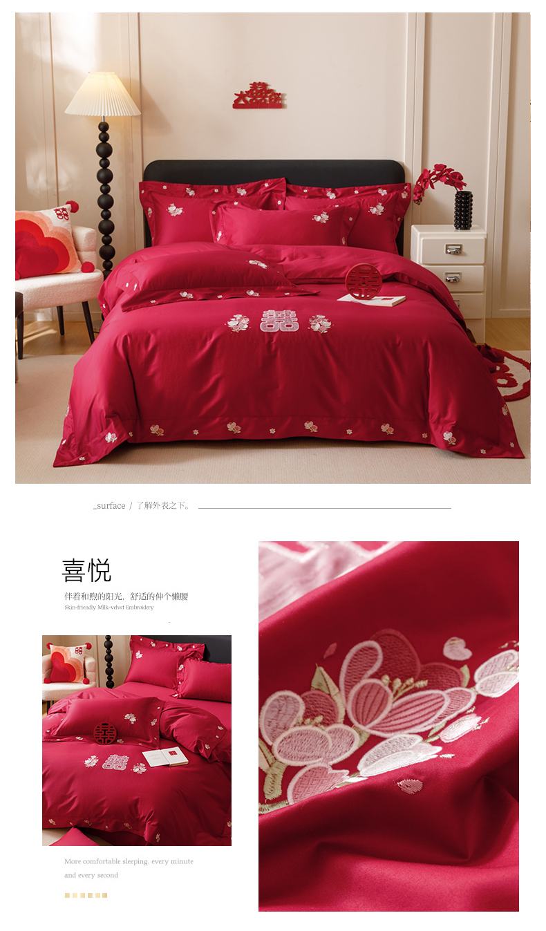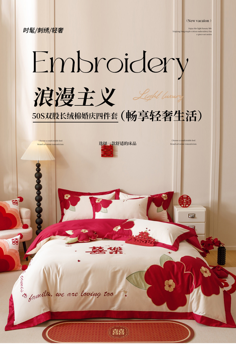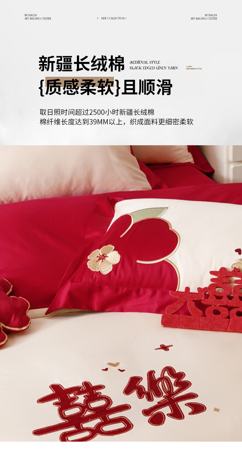 (总)紫桐 Lila lndus 2025新款50s双股长绒棉婚庆四件套,怦然心动,喜悦
