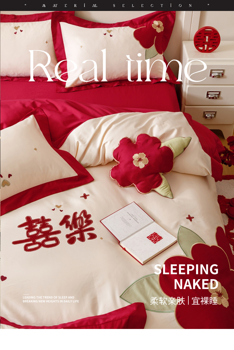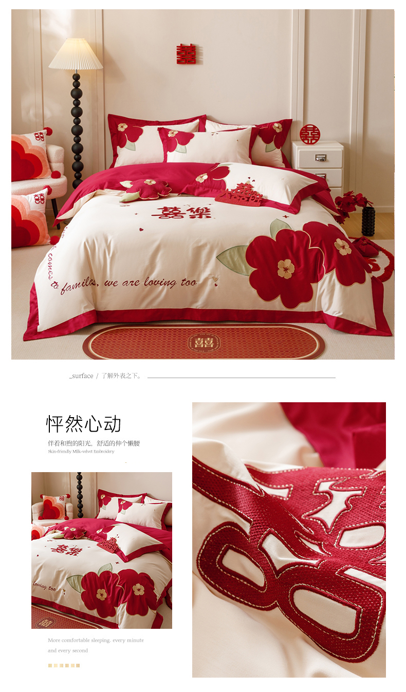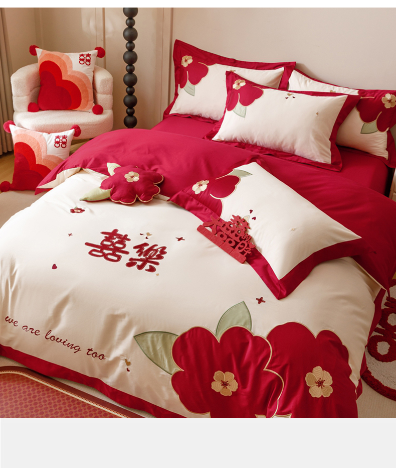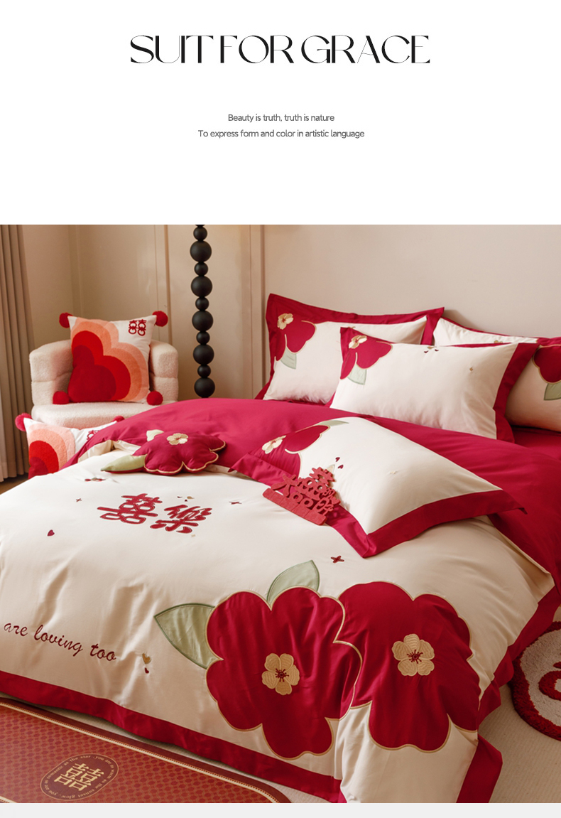 (总)紫桐 Lila lndus 2025新款50s双股长绒棉婚庆四件套,怦然心动,喜悦
