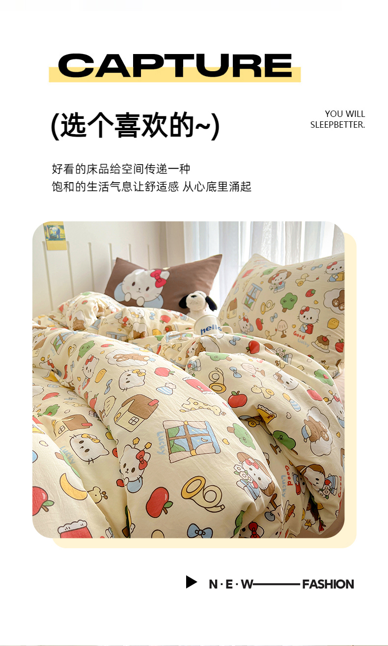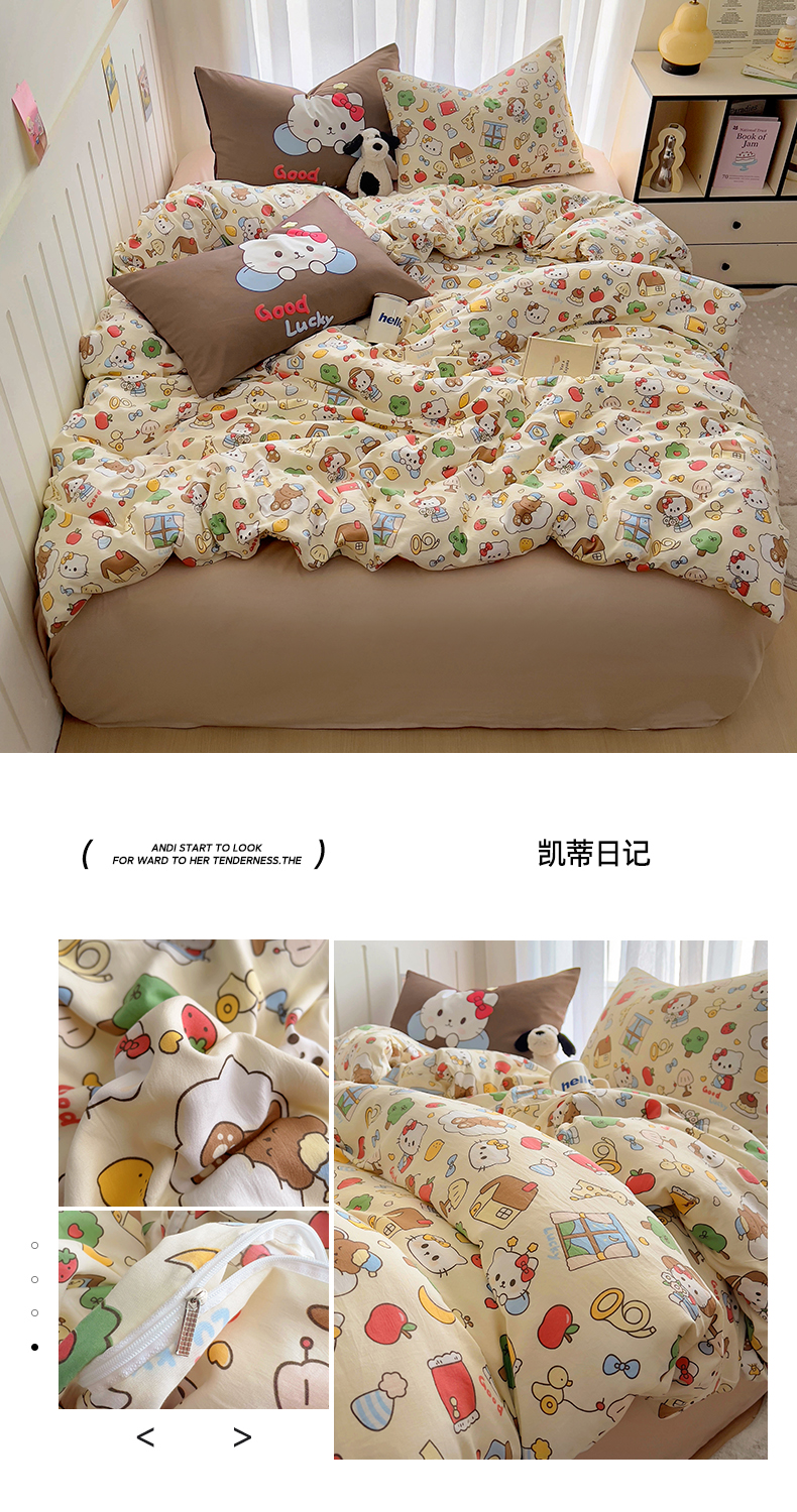 当前位置: 91家纺网 > 商品网购 > 床品套件 > 四件套 > 水洗棉四件套 > 春光里 2025新款水洗棉印花系列四件套 凯蒂日记
