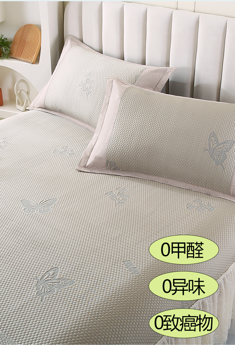 (总)莱轩席业 2024新款A类艾草冰藤刺绣款凉席可拆床卸裙款,粉色,灰色,咖色,浅紫,水绿