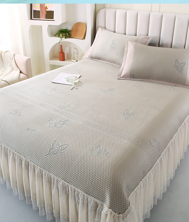 莱轩席业 2025新款A类加厚豆豆床裙款凉席 芬芳灰