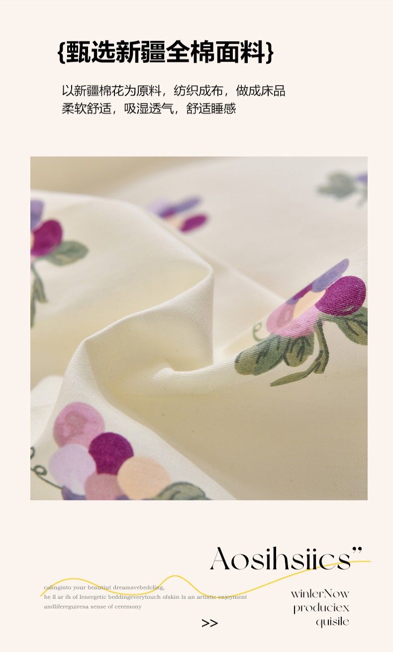 商品名称:梦精灵家纺 2025新款韩系全棉花边款单被套 紫葡萄