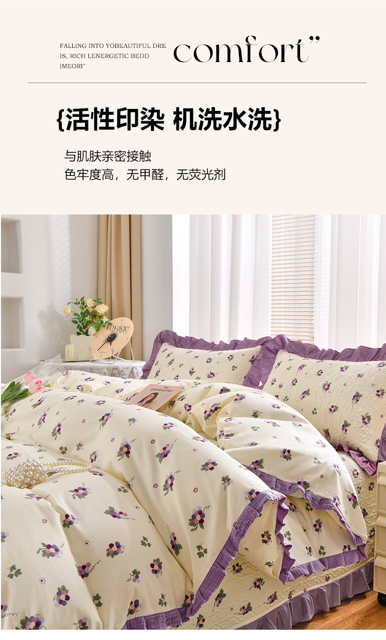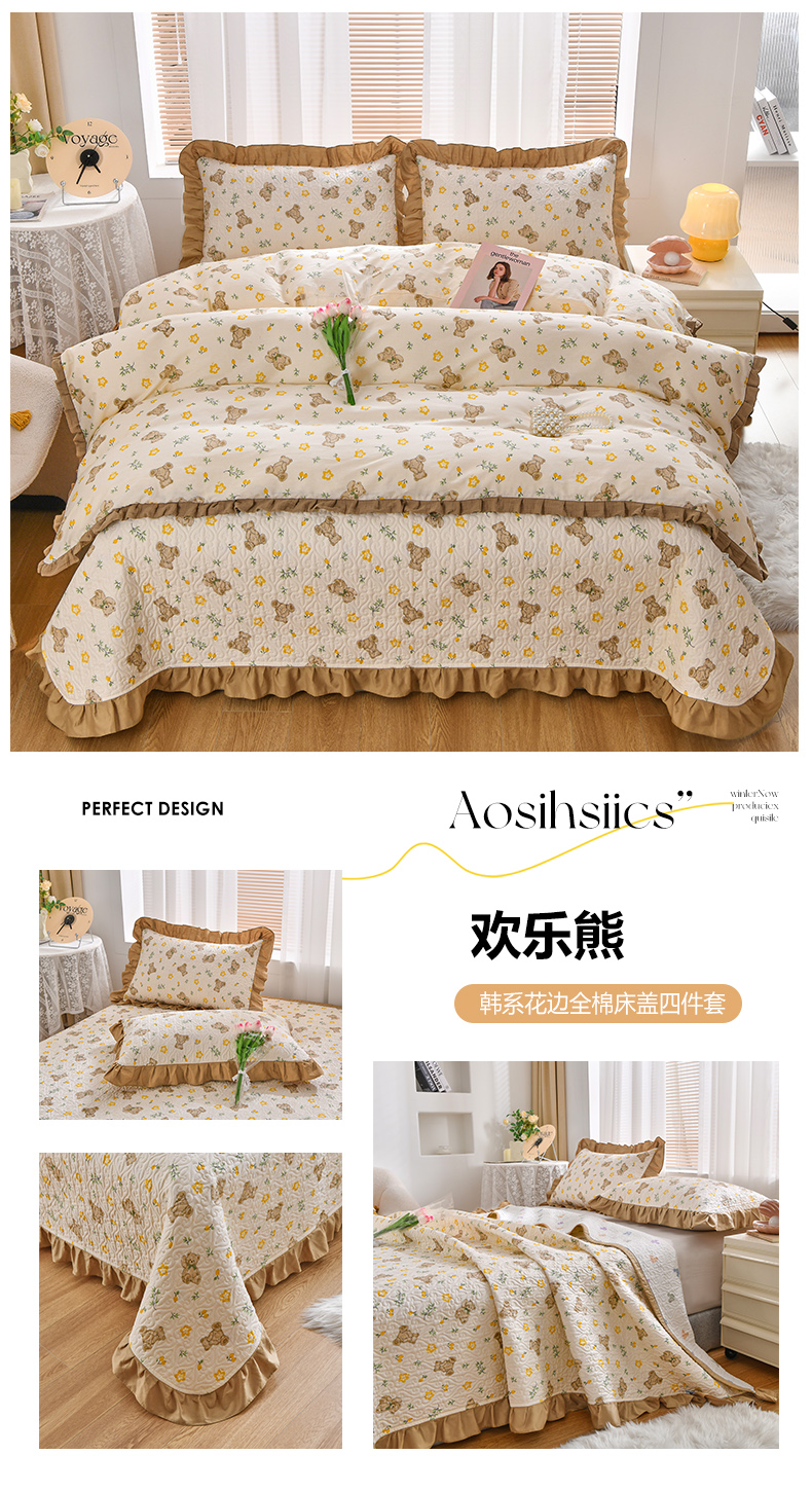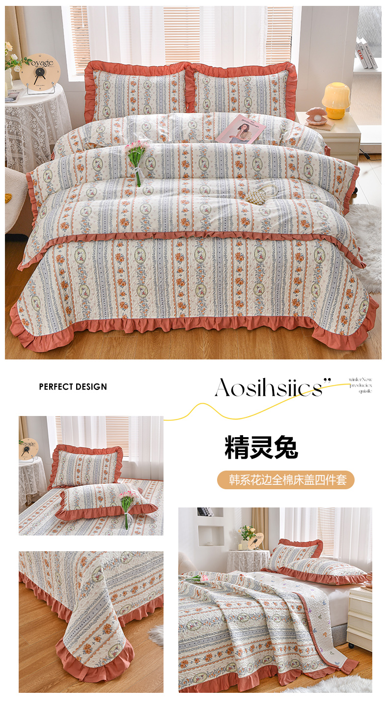 (总)梦精灵家纺 2025新款韩系花边全棉床盖四件套,布朗熊,欢乐熊,浆果小兔,爱薇儿,畅游春园,精灵兔,紫葡萄,萌兔寻香,青丝花带