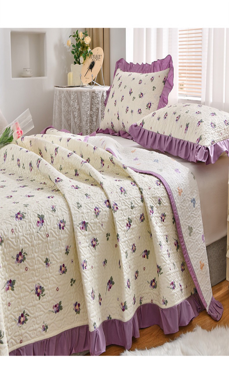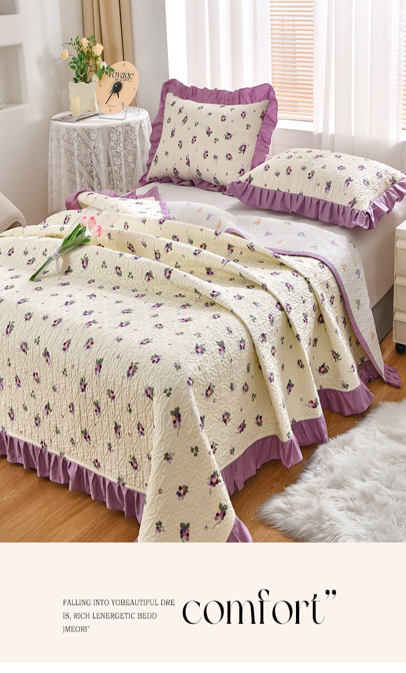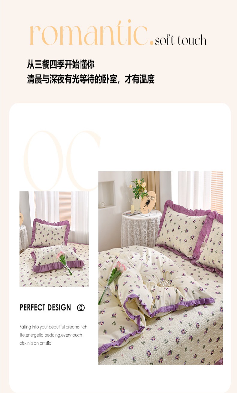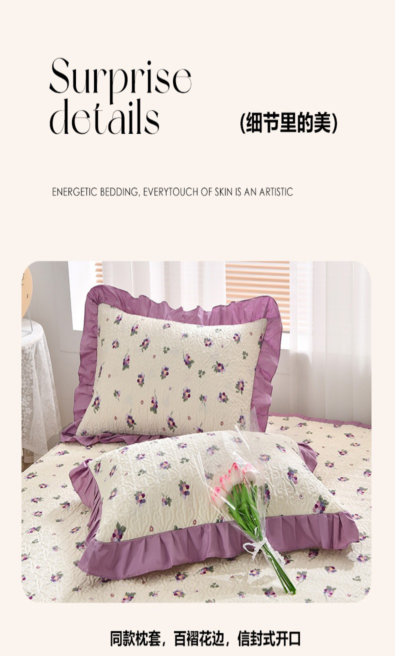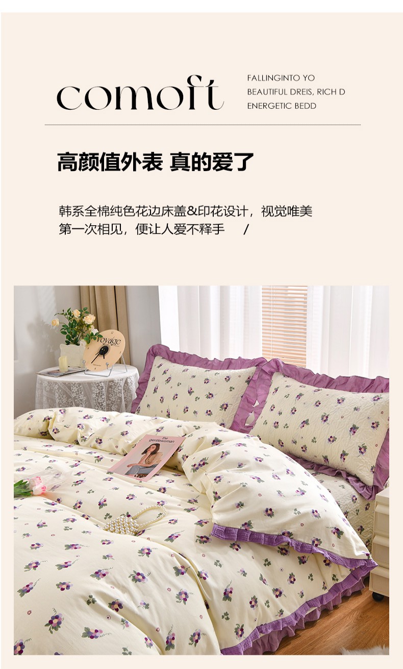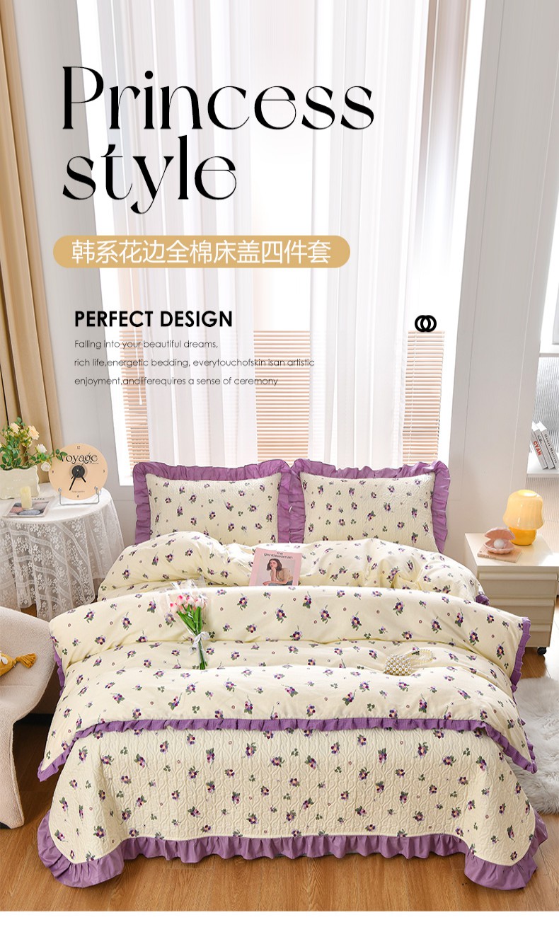 梦精灵家纺 2025新款韩系全棉花边款单被套 紫葡萄