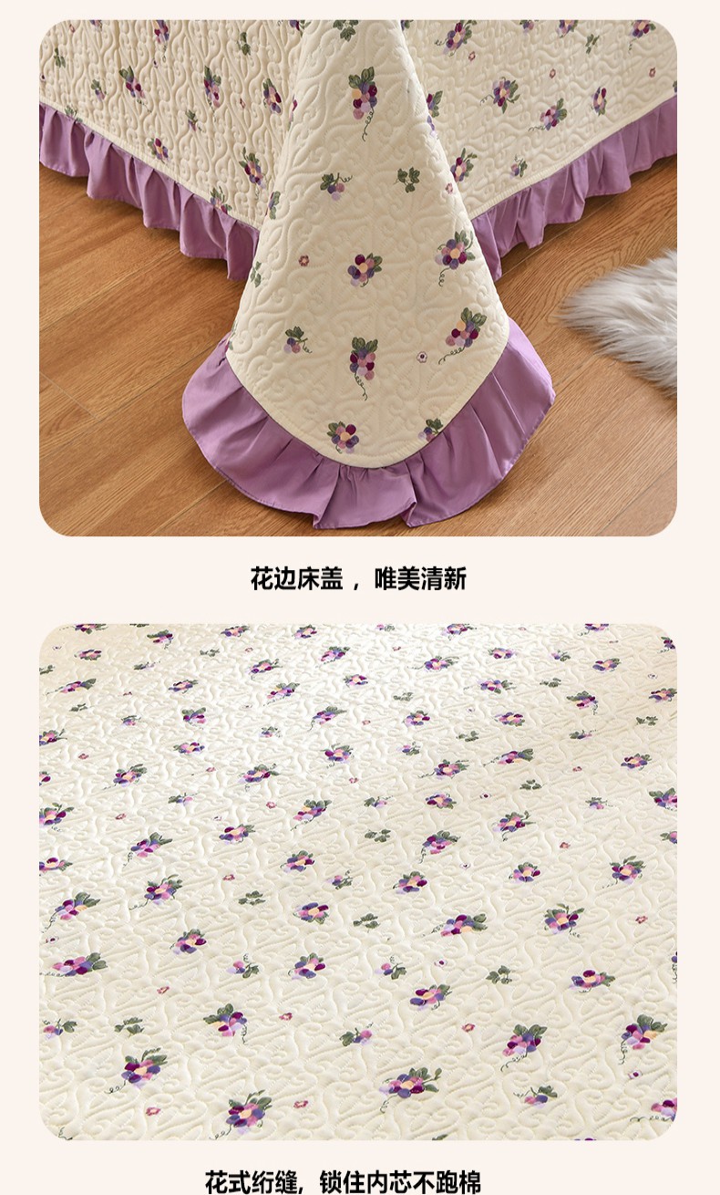 (总)梦精灵家纺 2025新款牛奶绒花边绗缝工艺印花单床盖,花边款-艾米丽,花边款-贝妮,花边款-草莓啵啵,花边款-晨汐花,花边款-花开连连,花边款-花飘香,花边款-莫兰朵,花边款-秋日银杏,花边款-小美好,花边款-薄荷绿,花边款-挪威蓝,花边款-藕粉,花边款-松灰,花边款-优雅紫