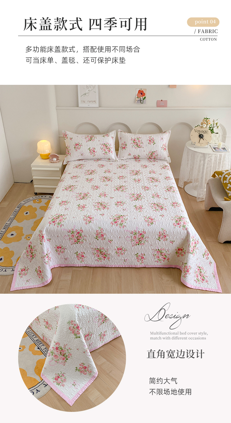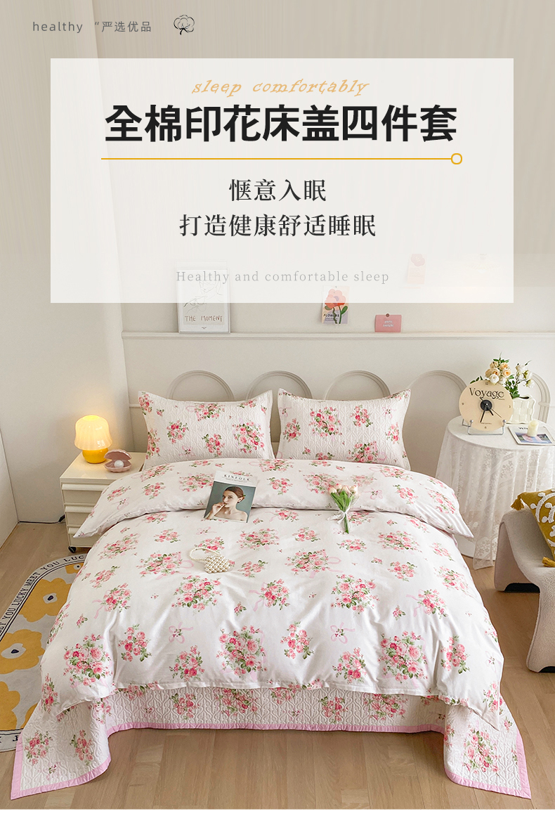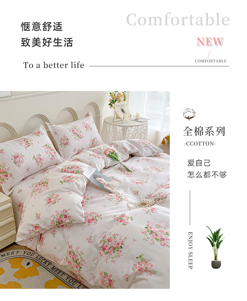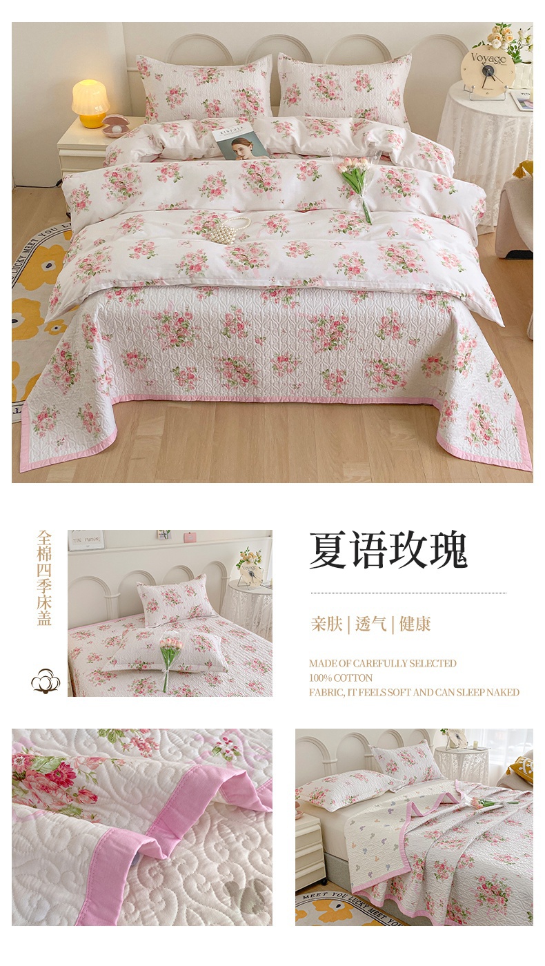 梦精灵家纺 2025新款简约款直角全棉印花单被套 夏语玫瑰