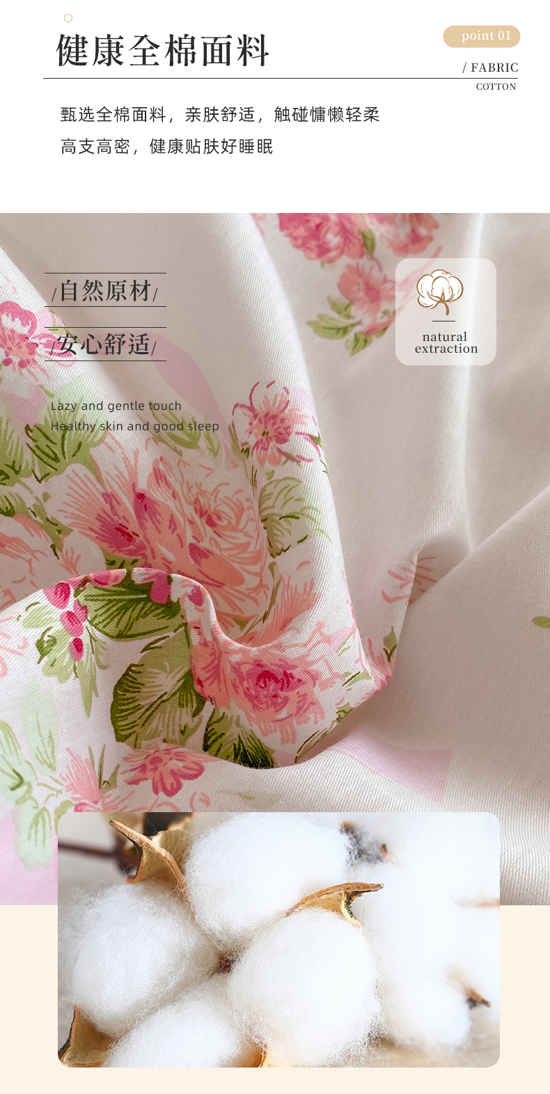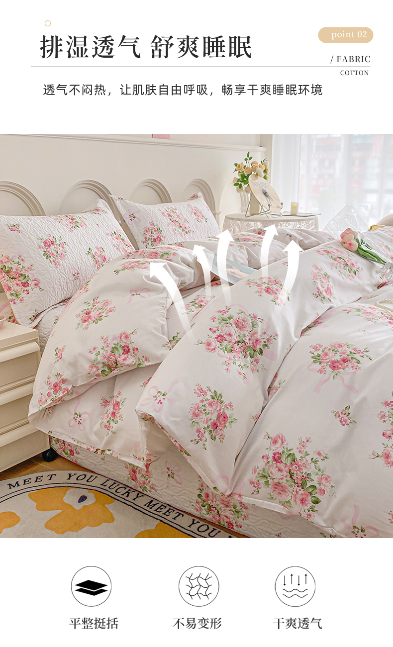商品名称:梦精灵家纺 2025新款简约款直角全棉印花单被套 夏语玫瑰