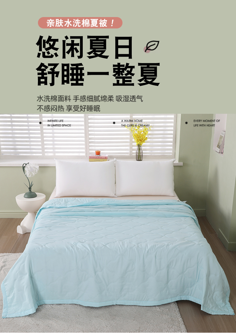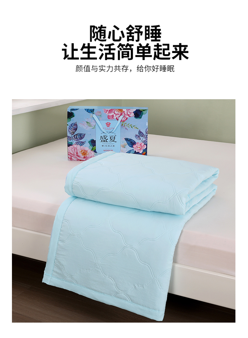 商品名称:太阳树家纺 2025水洗棉夏被夏凉被空调被超声波压花礼品直播供应链引流爆款 湖蓝
