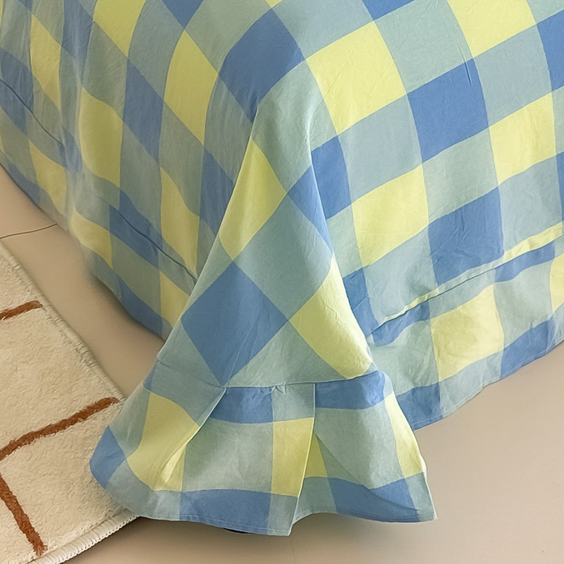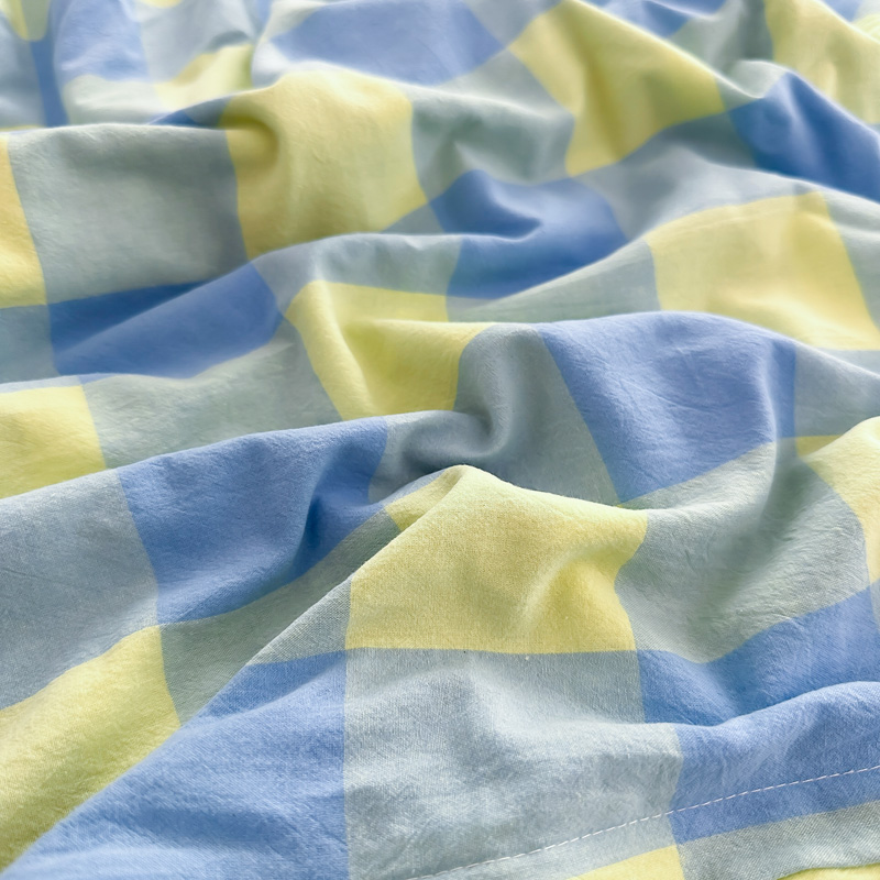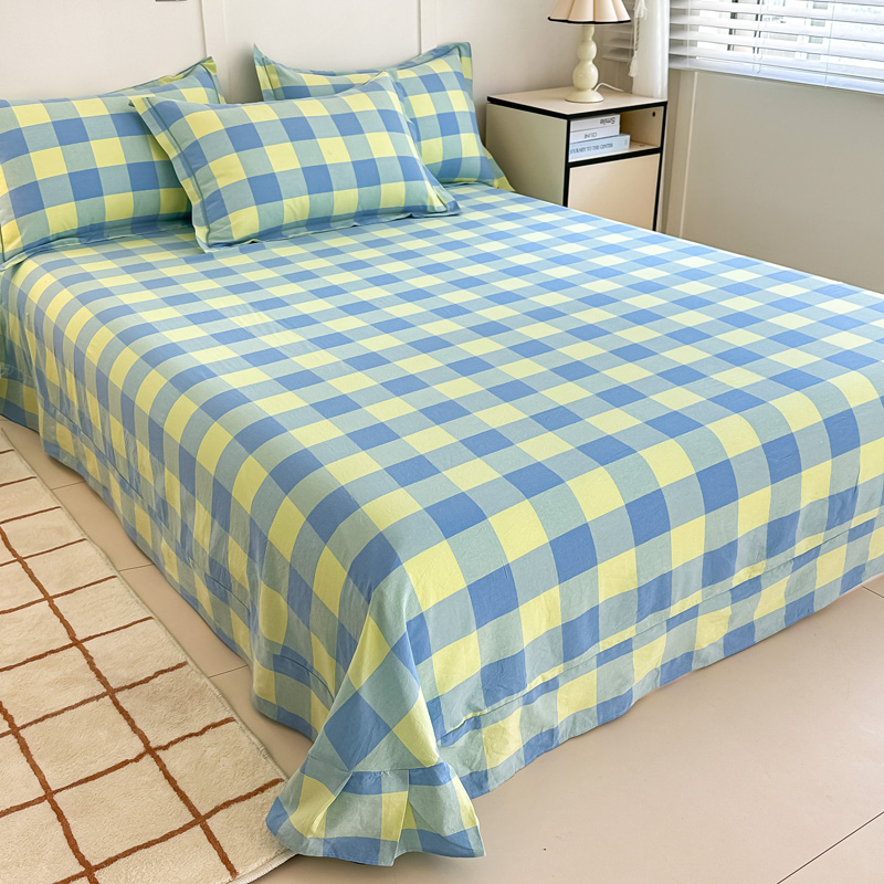 侯先生家纺 2025新款全棉色织四件套纯棉被套床单四季款格子三件套 蓝黄中格